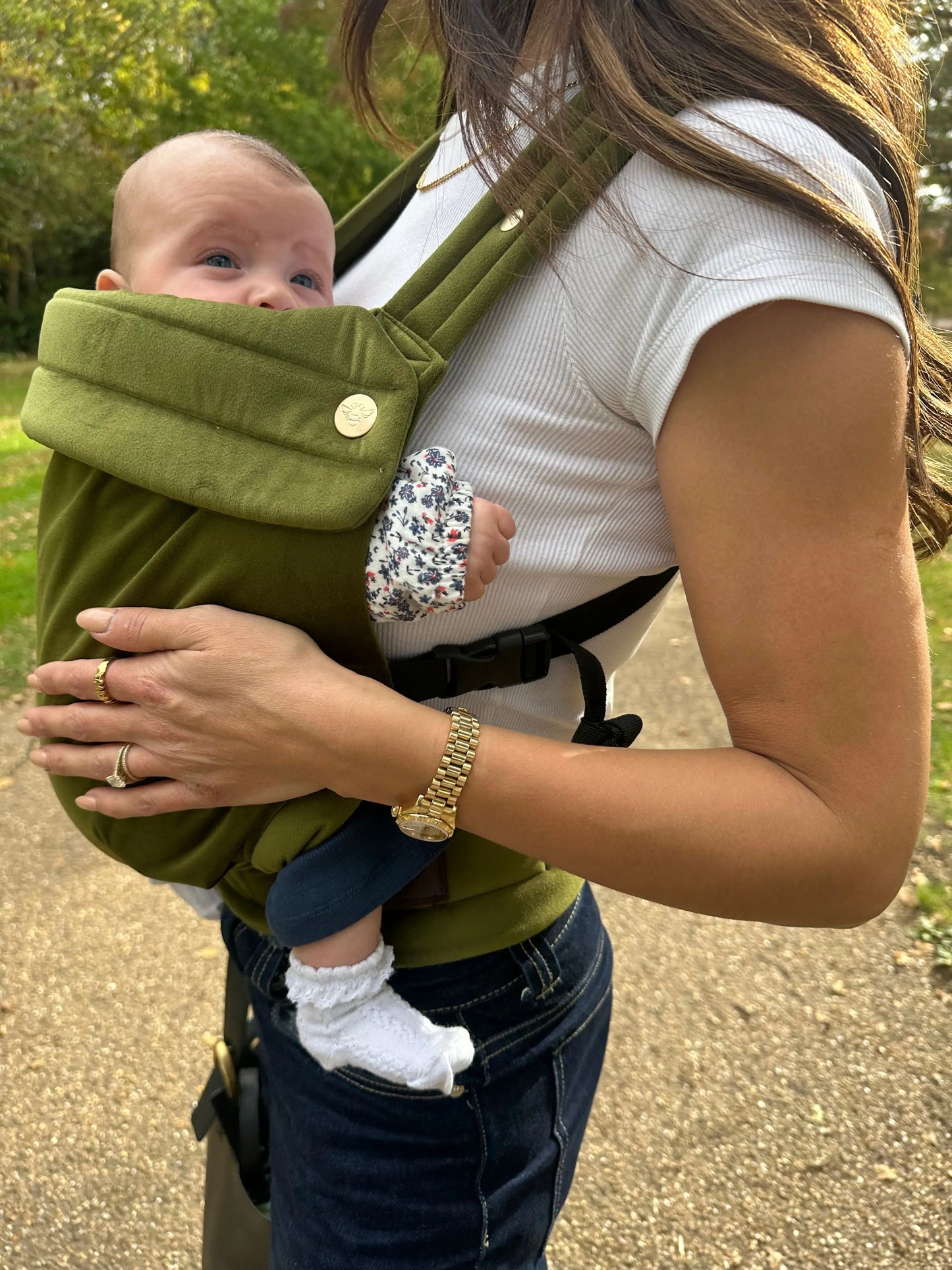 The Cedar Green Velvet Baby Carrier blends elegant design with practical comfort. Crafted from soft, plush velvet, it creates a cosy, soothing environment for your baby while remaining lightweight and supportive for parents.