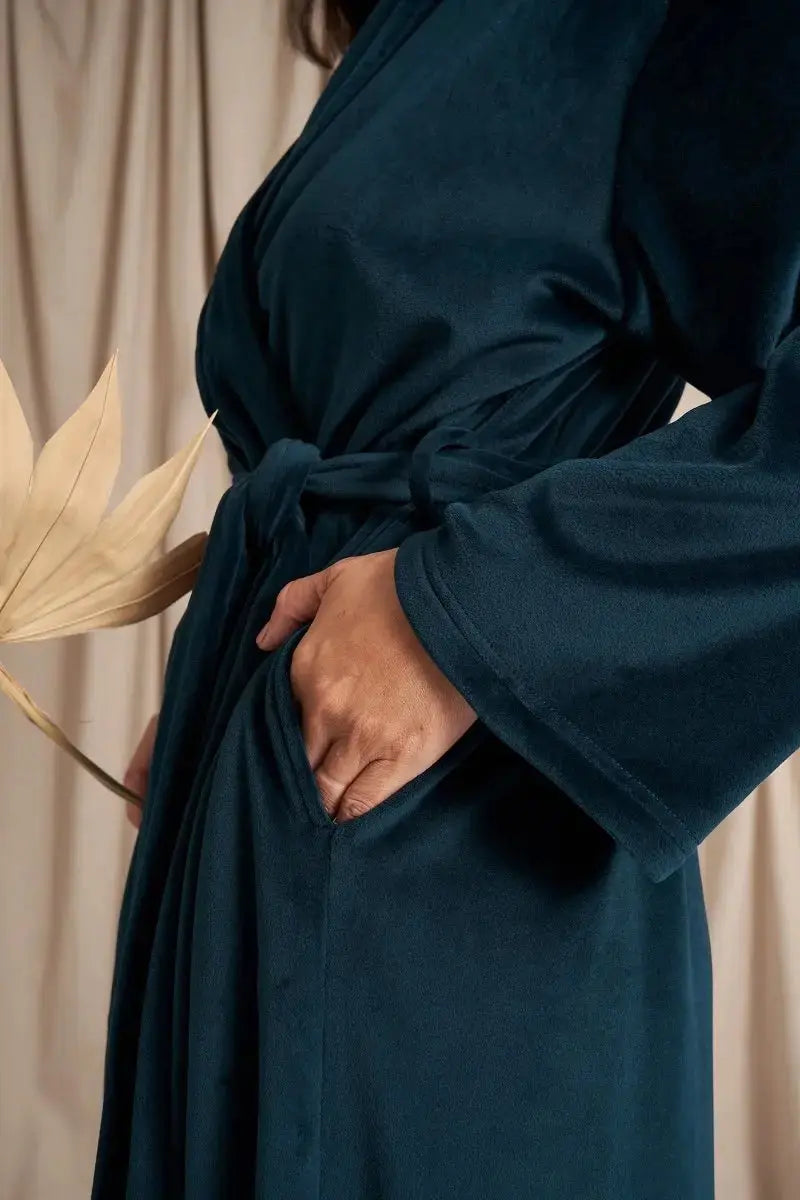 Indulge in the sumptuous softness of our Velour Longline Robe, crafted from the plushest velour fabric for an experience of unmatched comfort. Designed to cocoon you in warmth and elegance, this full-length robe is the ultimate companion for slow mornings, cosy evenings, and every moment of self-care in between.