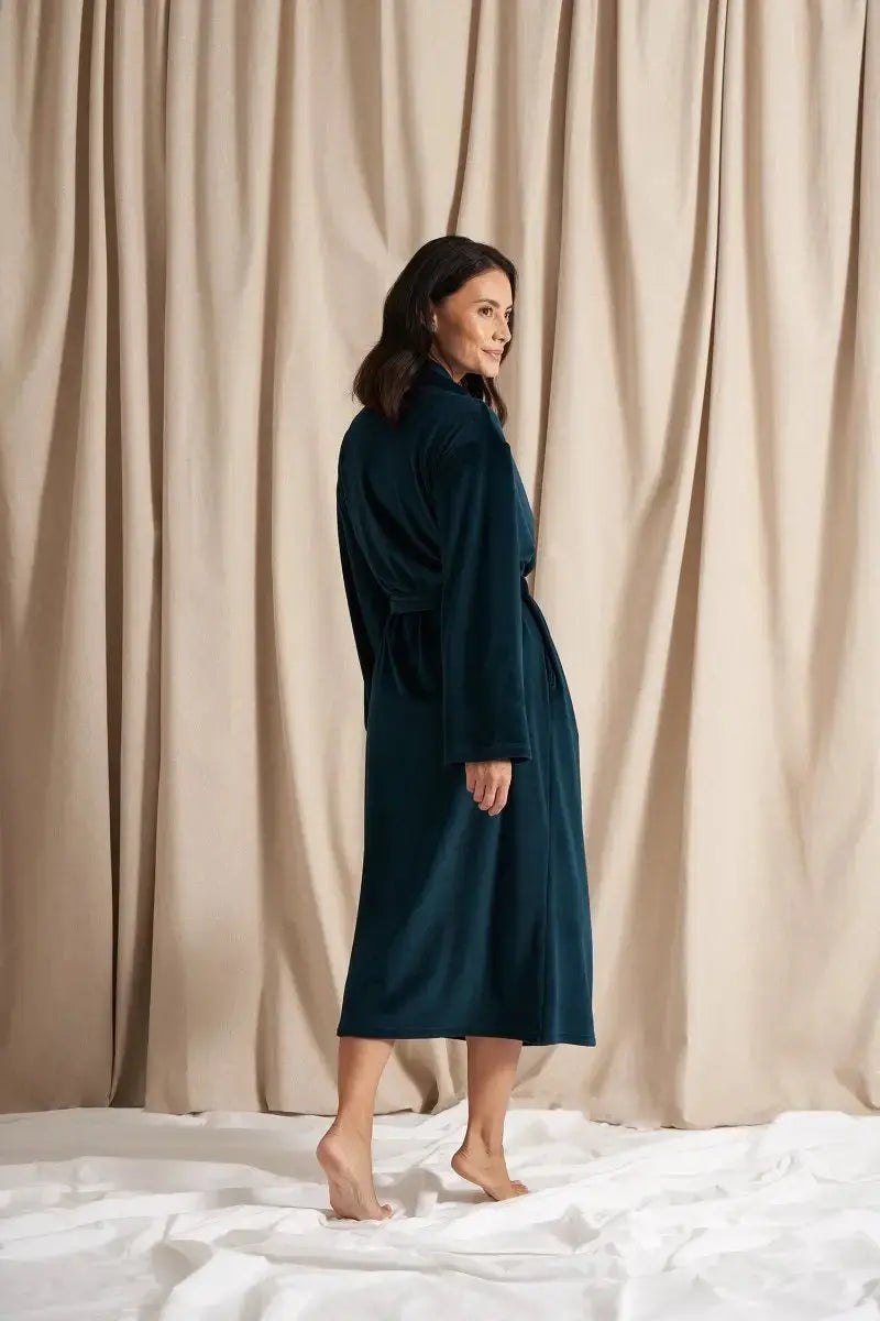 Featuring full-length sleeves for added warmth and both an internal waist tie and external waist tie for secure, adjustable comfort, this robe is the perfect blend of practicality and style. The longline silhouette drapes beautifully, creating a luxurious, flattering fit that feels as indulgent as it looks.