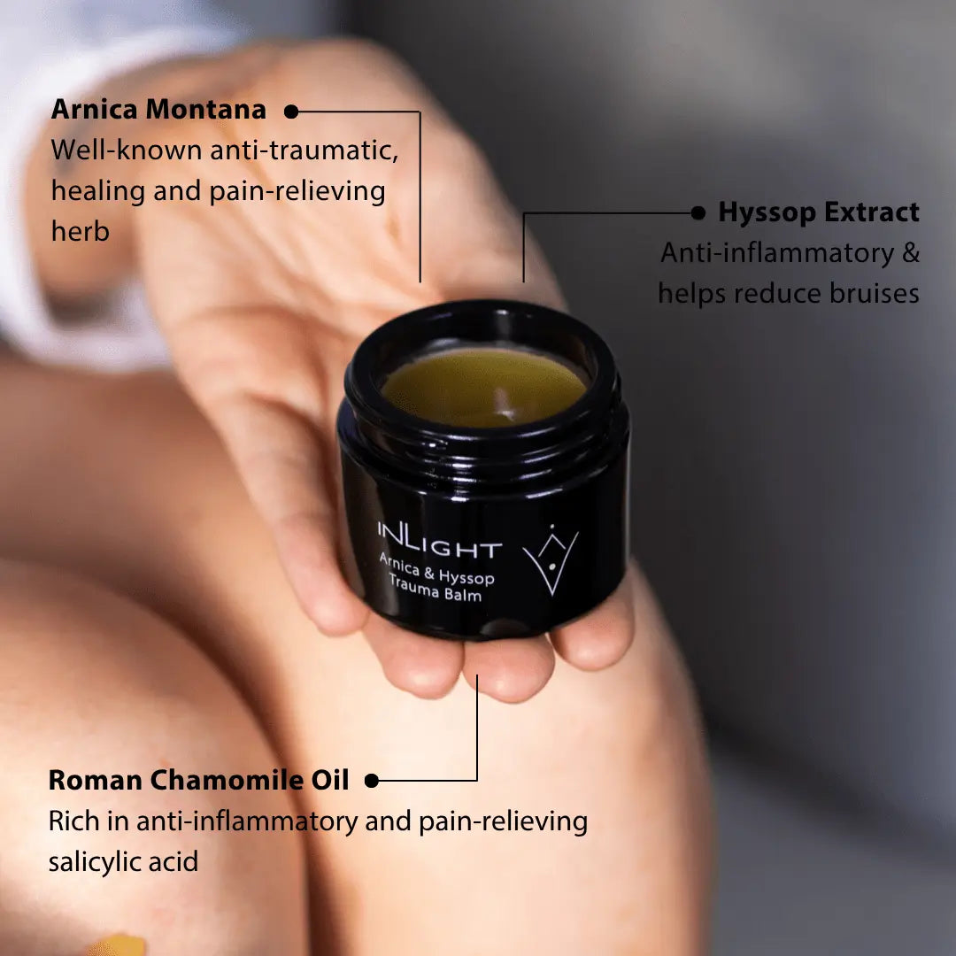 This powerful botanical balm combines Arnica montana, hyssop, and St John’s wort to help soothe bruises, bumps, and muscle discomfort—a natural first aid essential for daily life.