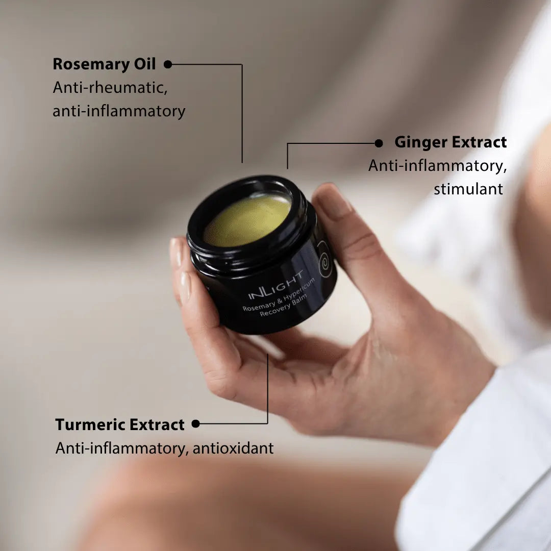 The formula combines the calming properties of St John’s Wort (Hypericum), Meadow-sweet, and Liquorice with stimulating botanicals such as Rosemary, Cinnamon, and Thyme. Together, these phytonutrients help relax tense muscles, improve circulation, and support the body’s natural healing response.