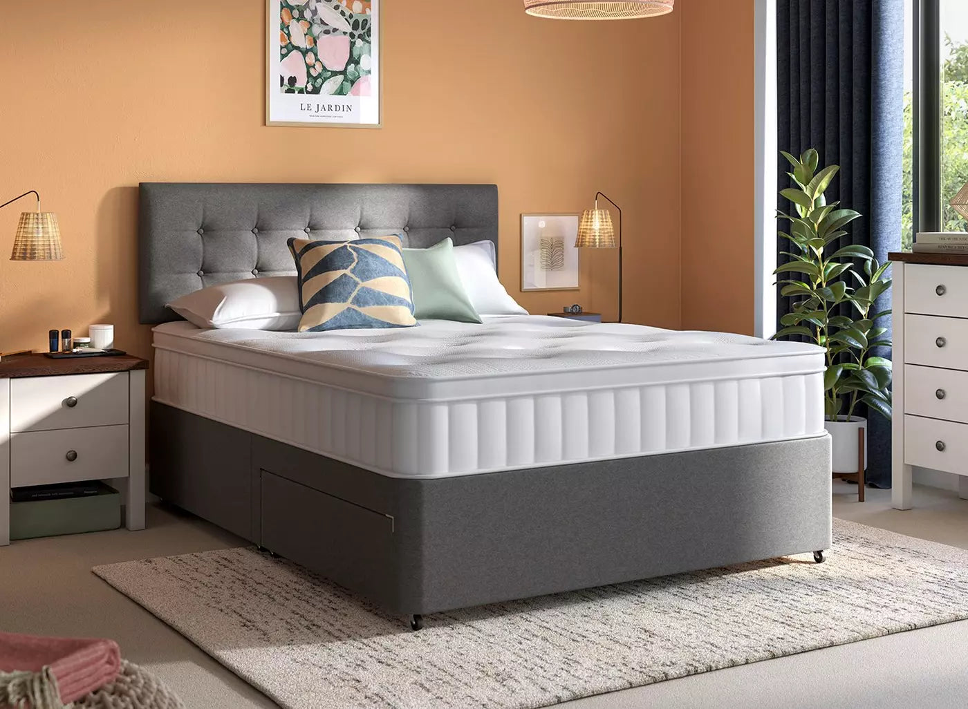 Proudly manufactured in the UK at our West Midlands factory, Dreams produces over 500,000 mattresses annually using responsibly sourced materials. Our mattresses include options such as pocket sprung, memory foam, hybrid, and eco-friendly designs, all rigorously tested for comfort and durability. Many of our models are approved by the Good Housekeeping Institute and come with extended warranties for peace of mind.