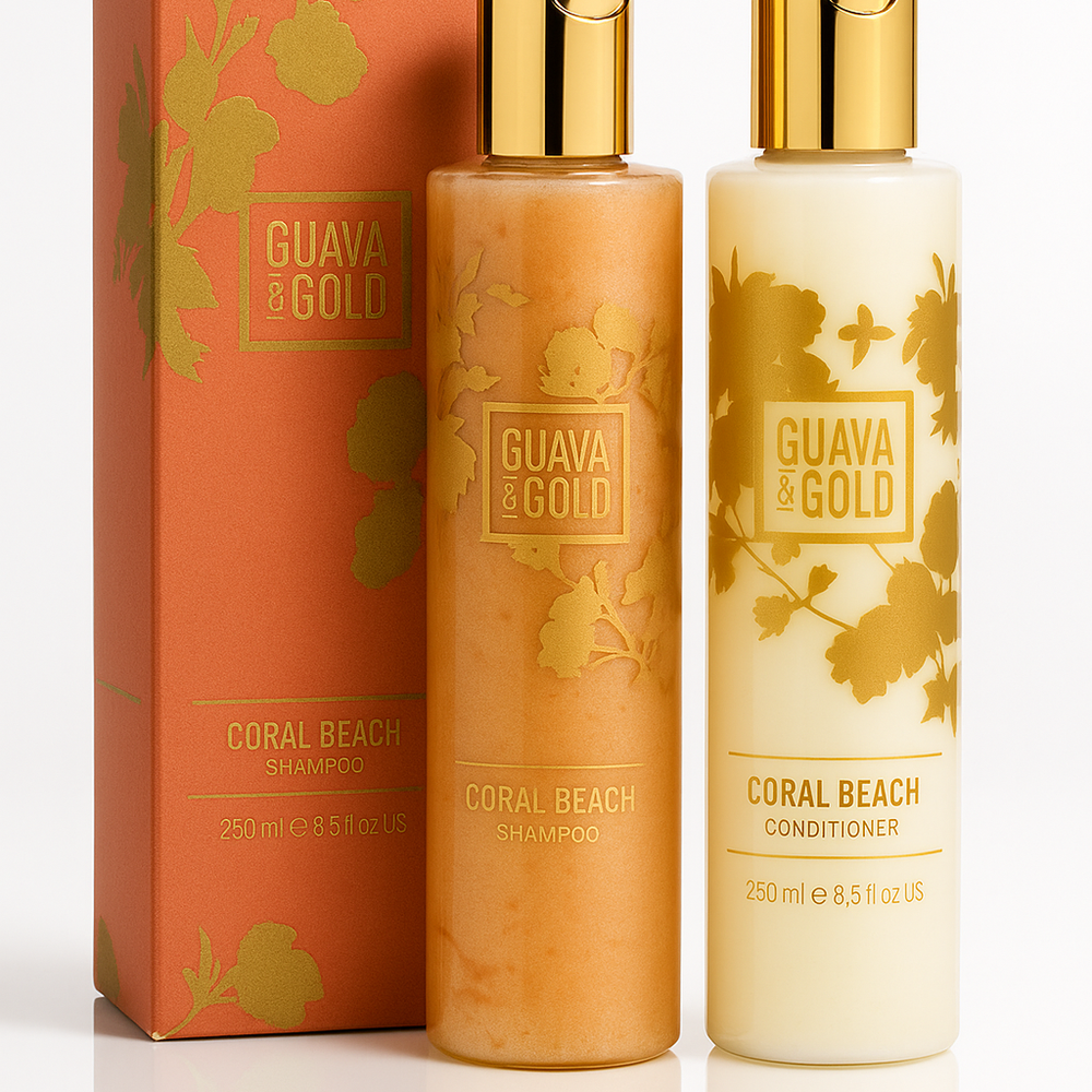 Close your eyes and prepare your mind and body for a blissful escape to the warm caress of a brilliant sun, clear blue skies, soft coral sand and the sound of the turquoise ocean lapping against the shore. Brimming with natural essential oils and exquisite fragrances which are unique to the brand, Guava & Gold is a new, elegant capsule collection of luxury, cruelty-free bath and body products. Relax, dream and escape to the ultimate sun-filled paradise, all in one bottle.