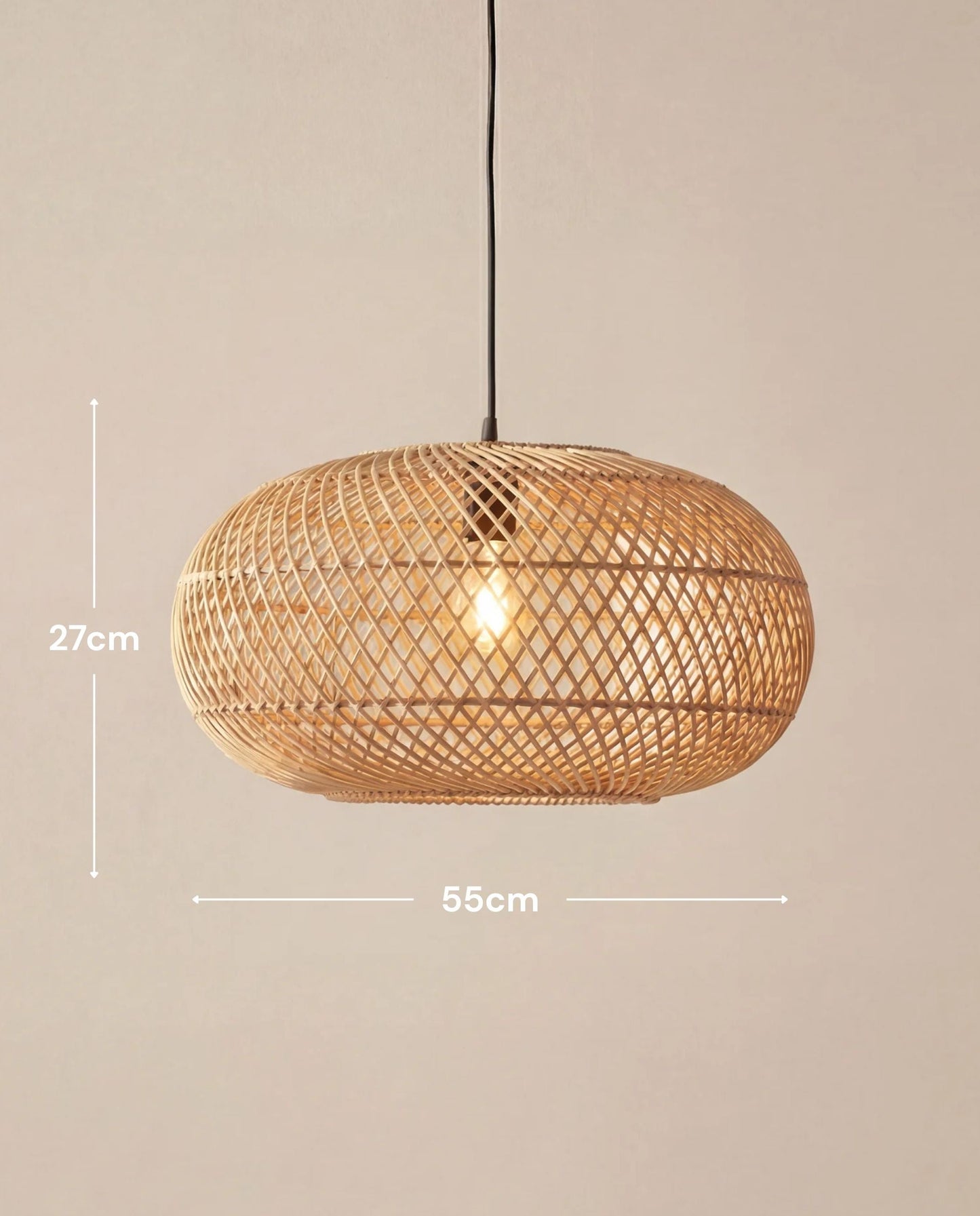 When lit, the rattan filters a warm, ambient glow while casting subtle shadows that add depth to a room. In daylight, the curved form and natural material bring texture and softness without visual weight.