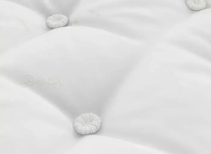 Traditional tufting keeps the internal layers securely in place, while two rows of side stitching reinforce the edges for long-lasting durability and consistent support across the mattress.