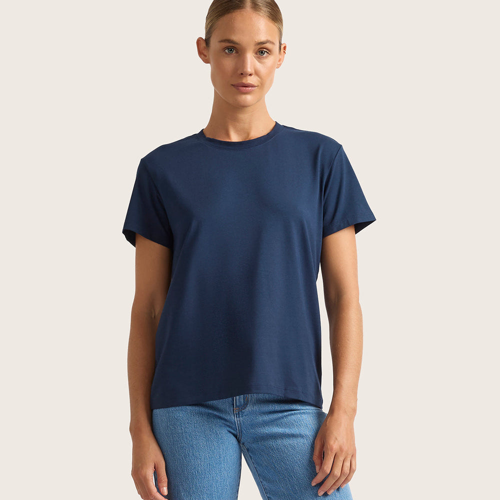 The deep navy shade offers a sophisticated alternative to black or white, complementing a wide range of colours and outfits while still feeling timeless and easy to wear. Durable, simple to care for, and endlessly versatile, our Navy T-Shirts are the reliable wardrobe essential you’ll reach for again and again.