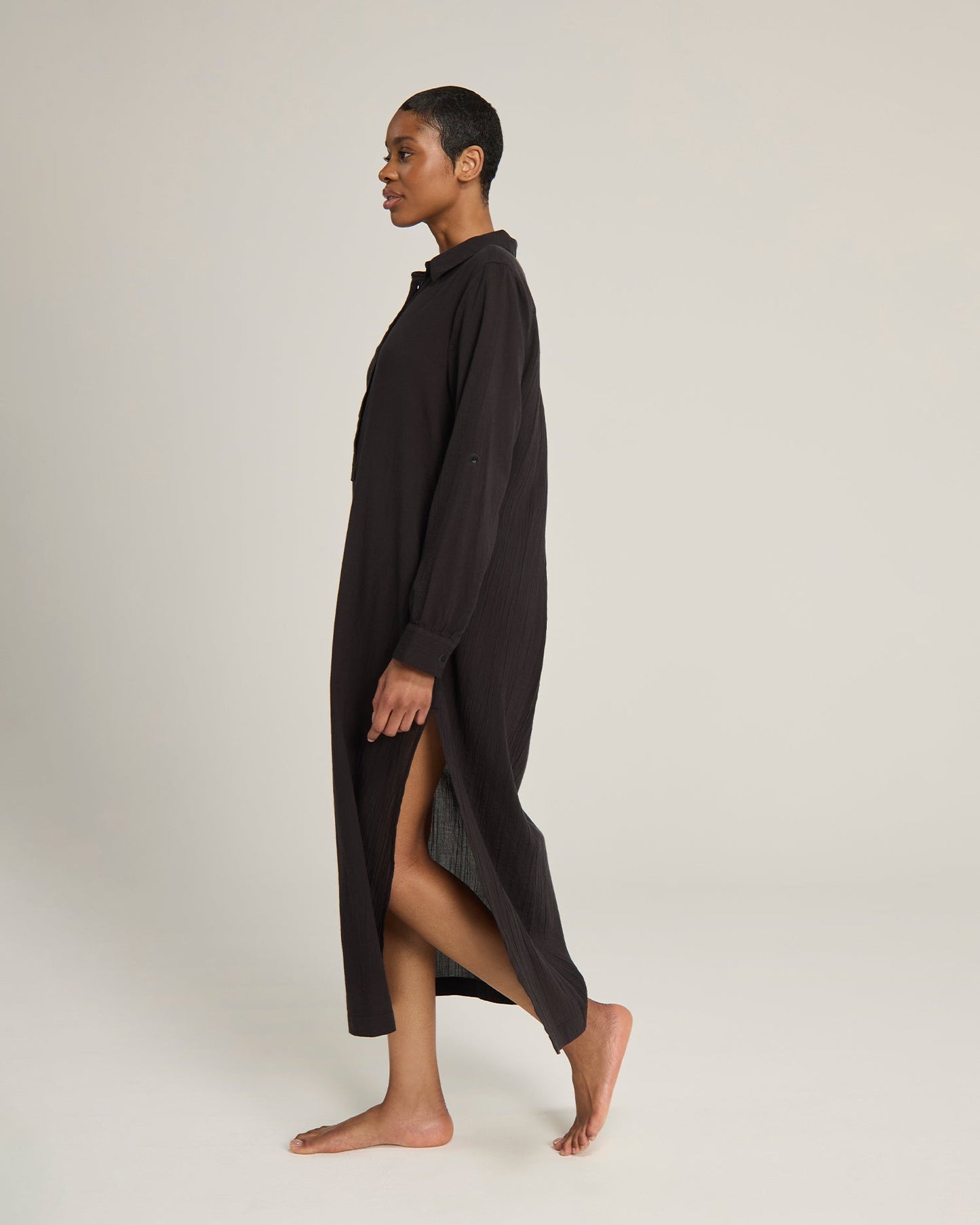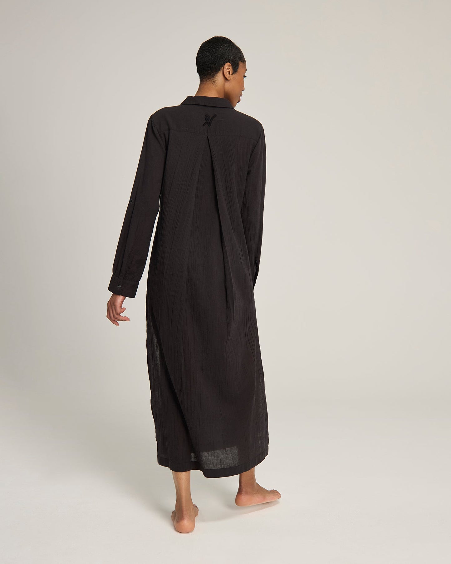 This maxi shirt is crafted from 100% organic cotton, offering a breathable and lightweight feel with an elevated, flowing silhouette. Designed for both lounging and sleep, it combines comfort with understated elegance.