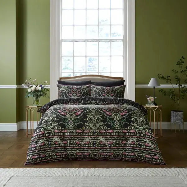 Elevate your bedding with the refined beauty of the Dorma Botanical Panel Pillowcase Pair. Crafted from 100% cotton sateen with a luxurious 300 thread count, these pillowcases feature a bold botanical design framed with classic border detailing — perfect for adding a sophisticated, statement-making touch to your bedroom.