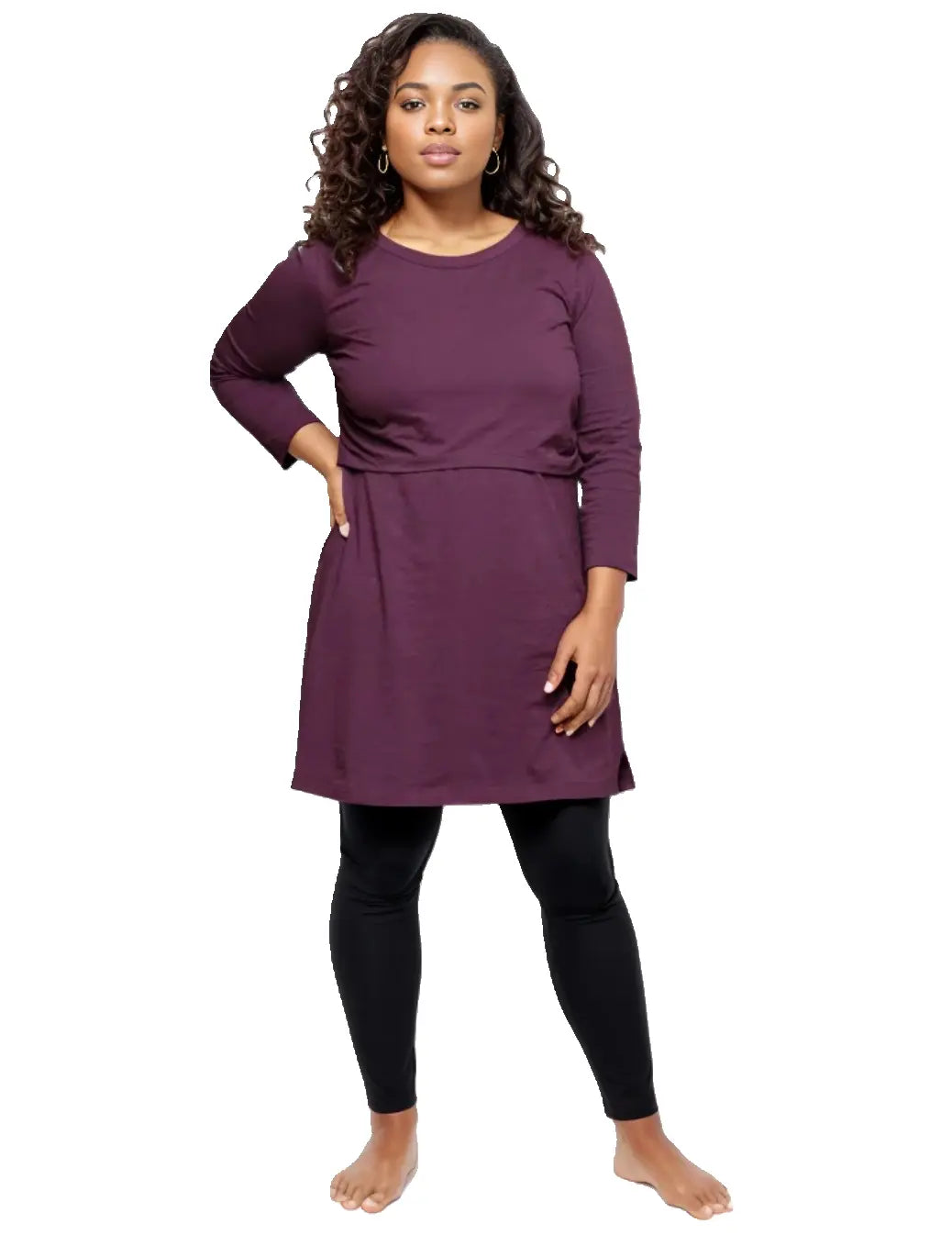 This timeless plum tunic blends fashion with functionality. Elevate your nursing wardrobe with this stylish essential breastfeeding piece, offering ease and sophistication at every stage of motherhood.