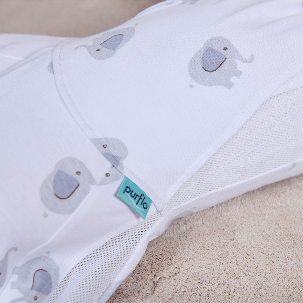 Take the comfort of swaddling with you, wherever you go with Purflo’s Swaddle to Sleep Bag 0.5 tog. With larger breathable mesh panels, air can circulate more freely, decreasing the risk of overheating at sleep time, meaning you can rest easy too. It’s perfect for the warmer summer months allowing your little snoozer to stay cool and comfortable from temperatures 18-27C.