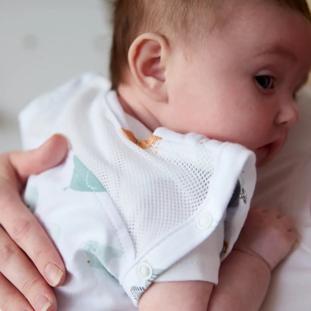 The zippers are carefully positioned away from baby’s delicate skin and opens from the bottom to make middle of the night nappy changes much easier. There is no need to worry about snags and catching as there is a zip guard around baby’s body and a secure seam around the legs and feet.