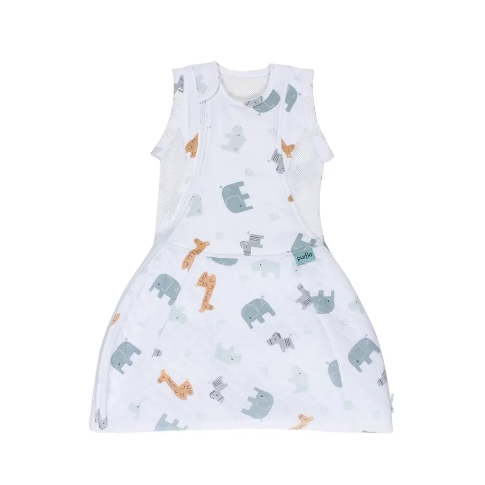 The Purflo Swaddle to Sleep Bag is a safe alternative to using blankets and loose bedding at sleep time and helps keep little ones at a safe temperature all year round. The versatile design of this baby sleep bag gives you the option to swaddle baby or let baby’s arms out – growing with your baby from a swaddle to a standard baby sleep bag. The 2.5 tog is perfect for all season use, allowing you to tailor the garments underneath to suit the temperature. The All Seasons Swaddle to Sleep Bag features the addition of Dupont™ Sorona® that is made from 37% plant based ingredients and is Oeko-Tex® 100 Class 1 Certified.