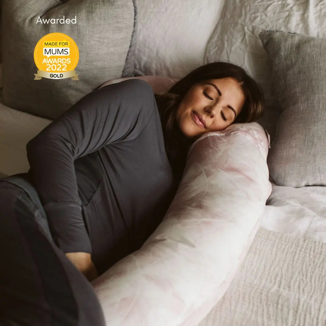 Shaped in a C-curve and measuring 1.4 metres in length, the BellaMoon® Pillow supports your neutral sleeping position by separating your hips, elevating your limbs, and easing tension. Designed with both comfort and versatility in mind, it’s your perfect companion from the first trimester through baby’s first year.