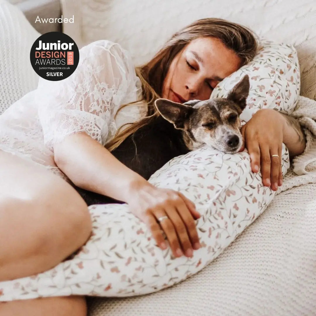 Shaped in a C-curve and measuring 1.4 metres in length, the BellaMoon® Pillow supports your neutral sleeping position by separating your hips, elevating your limbs, and easing tension. Designed with both comfort and versatility in mind, it’s your perfect companion from the first trimester through baby’s first year.