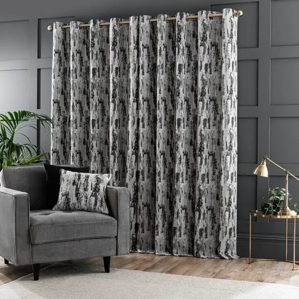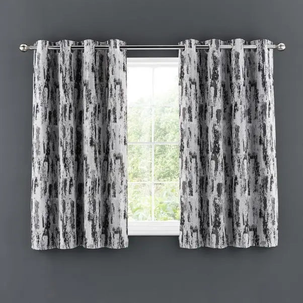 Charcoal Abstract Geometric Eyelet Curtains – Modern Texture with Sustainable Style