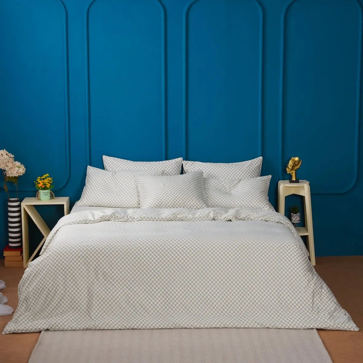 Experience the perfect blend of comfort, quality, and contemporary design with the Ackly Bamboo Sage Checkerboard Pillowcases.