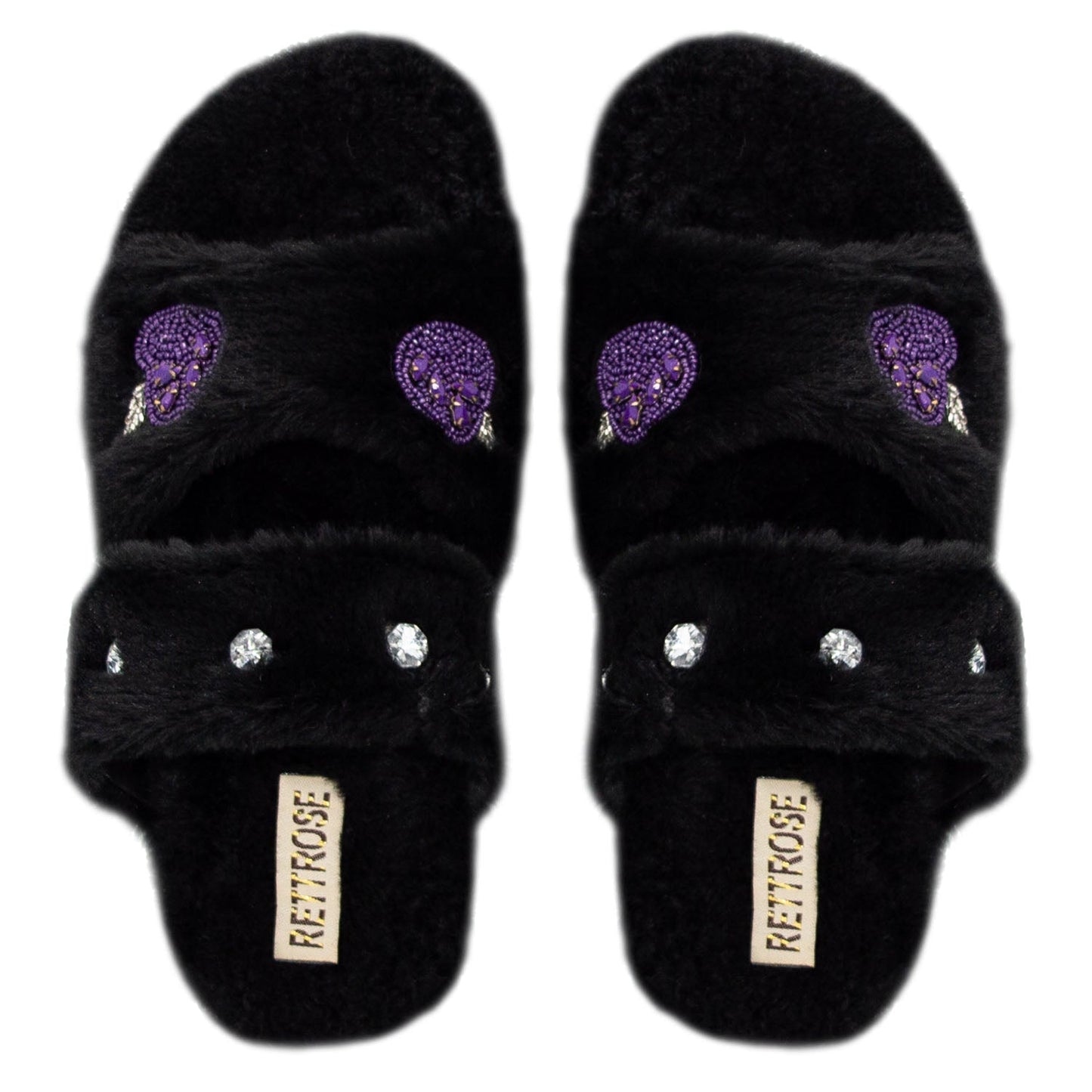 The Ada Black Luxury Plush Diamanté Embellished Handmade Slipper - RETTROSE