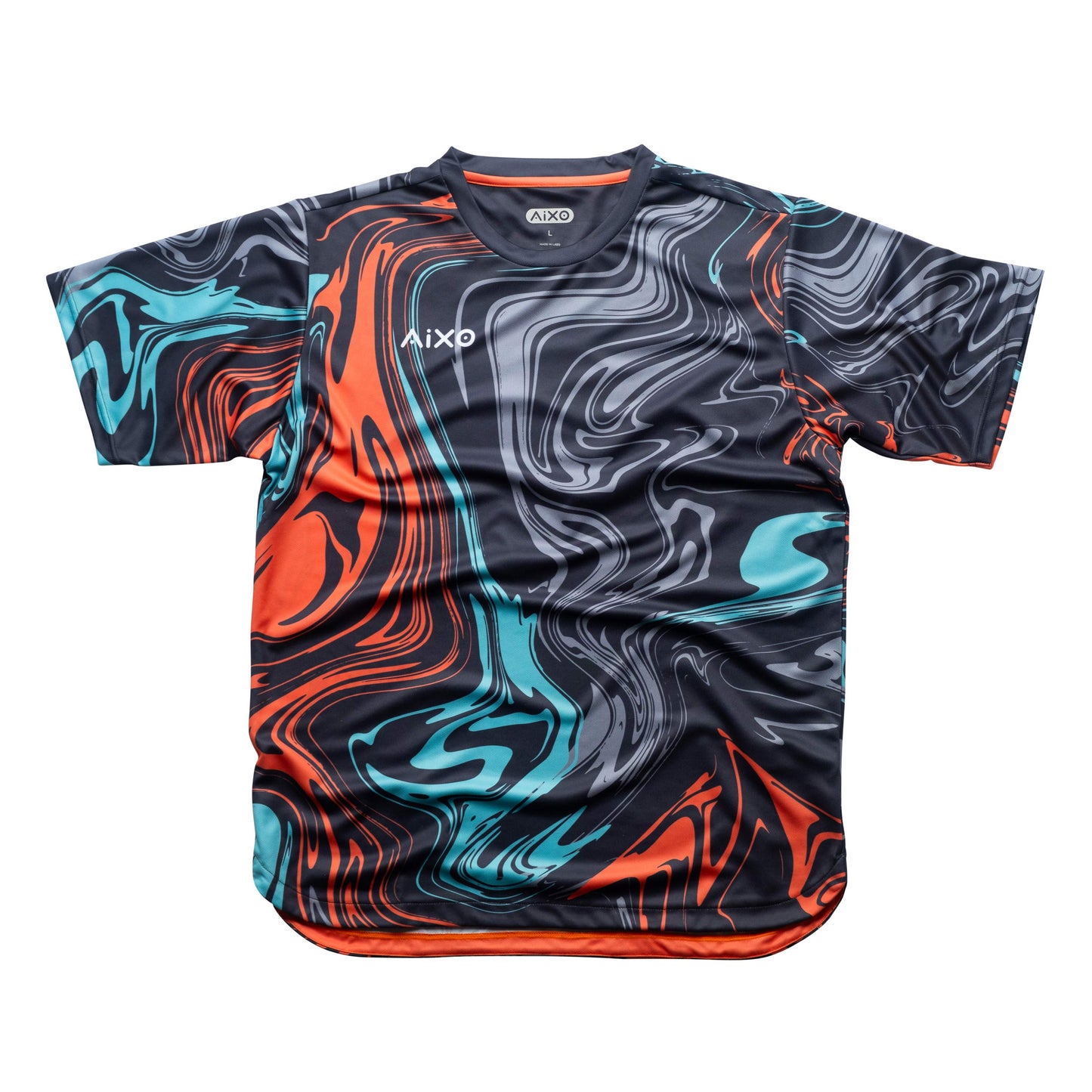 Discover this lava-like marvel in vibrant color-melting hues. Match its fluid design with your agile on-court movements for the ultimate racket-based partnership. Beyond its captivating appearance, this top offers advanced technology with lightweight, moisture-wicking, and breathable fabric, ensuring peak performance. Engineered to withstand the rigors of any racket sport, whether it's tennis, badminton, padel, pickleball, or squash, this AIXO shirt has you covered.