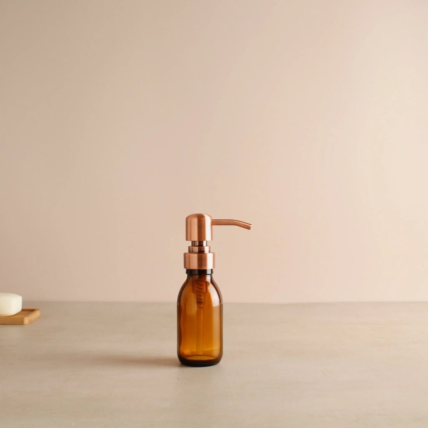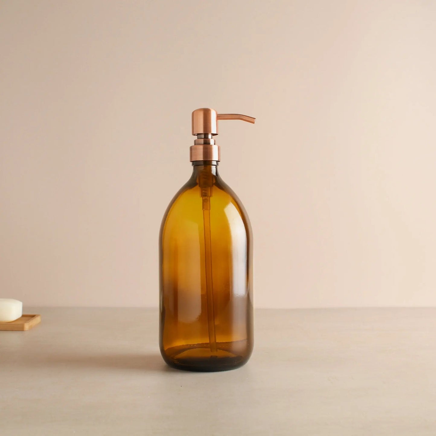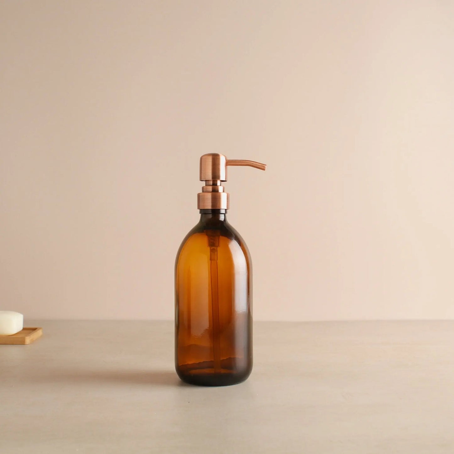 Amber Glass Dispenser Bottle With Rose Gold Pump