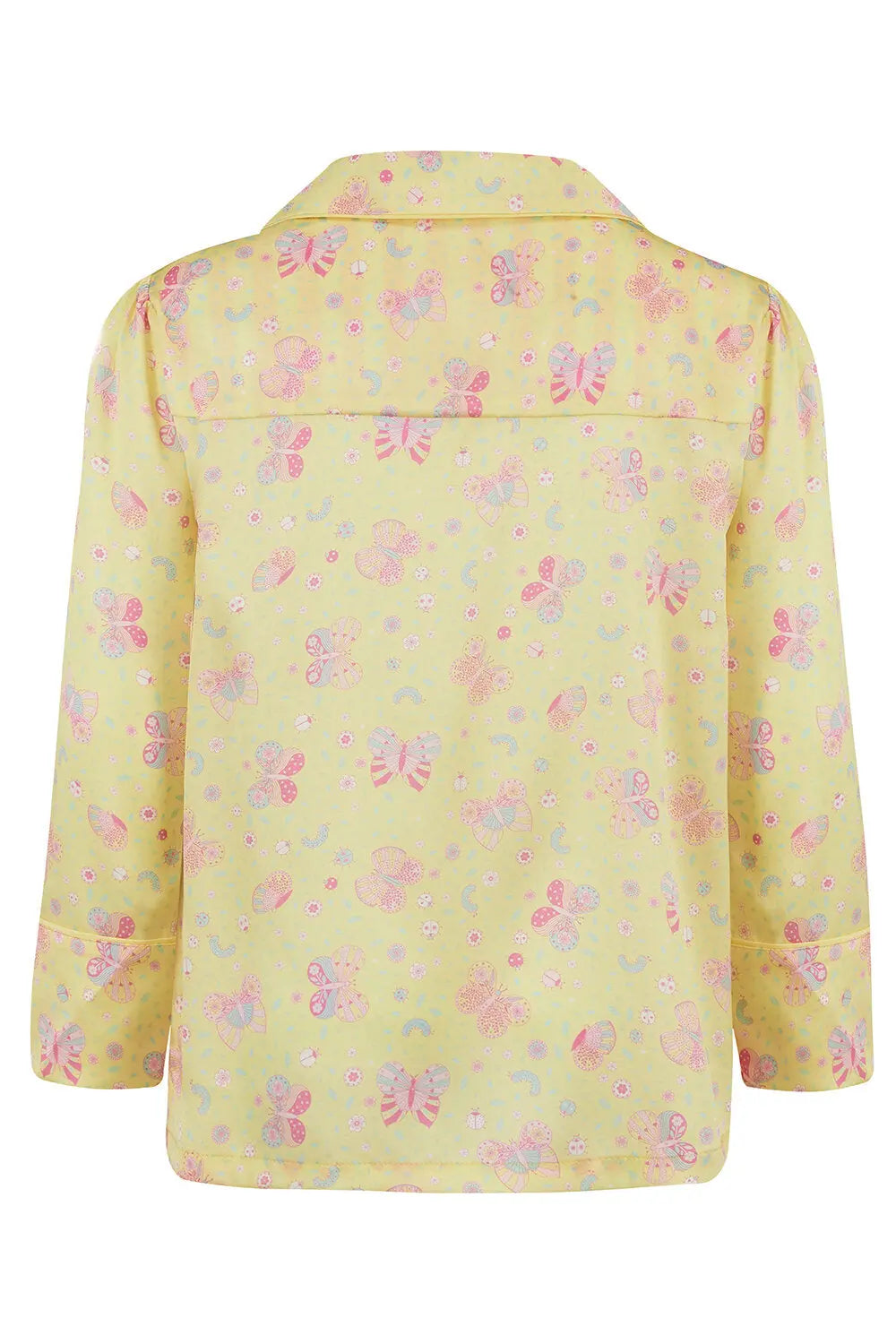 Amelie Lemonade Butterfly Girls Silk Pyjama Set