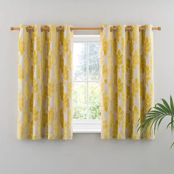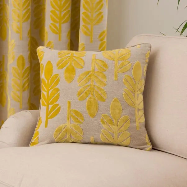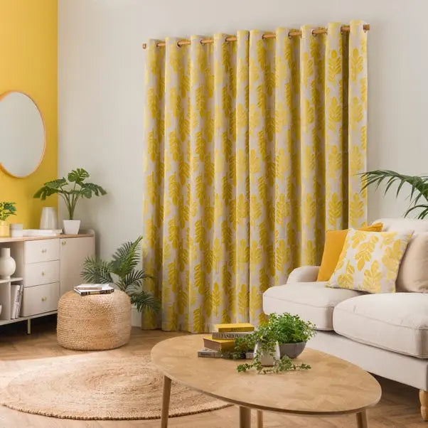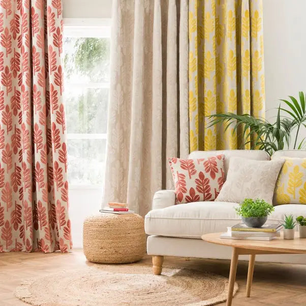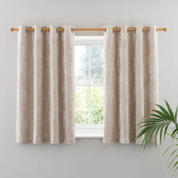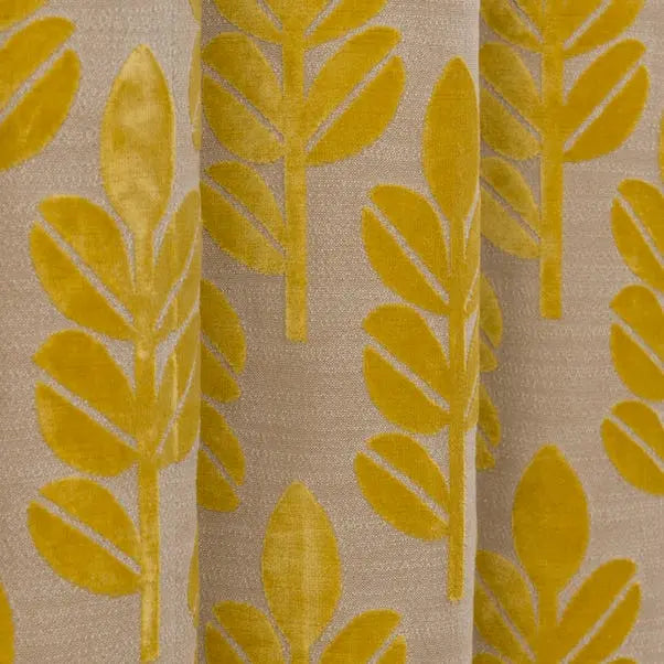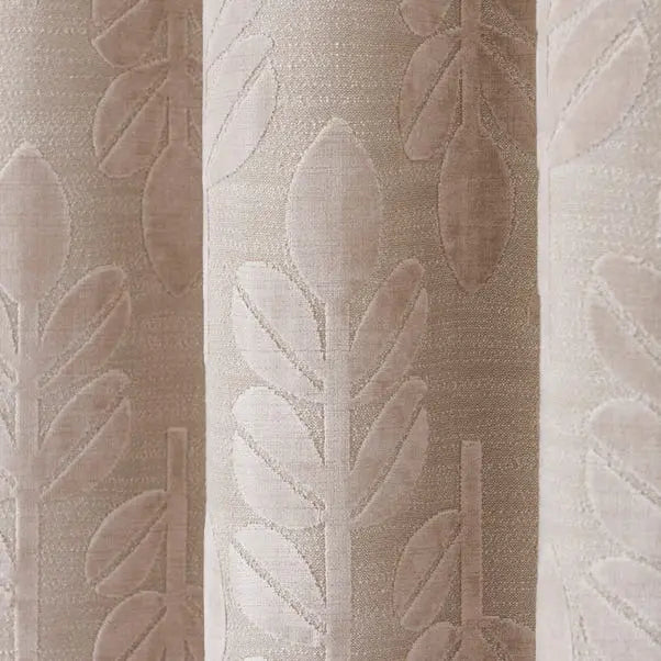 Introduce contemporary charm with timeless detail into your home with our Cut-Velvet Leaf Curtains. Featuring an elegant velvet leaf pattern set against a natural woven backdrop, this pair of curtains creates a stunning focal point while offering functionality and eco-conscious craftsmanship. Finished with brushed steel eyelets for smooth, modern hanging, these curtains deliver luxury in both form and function.