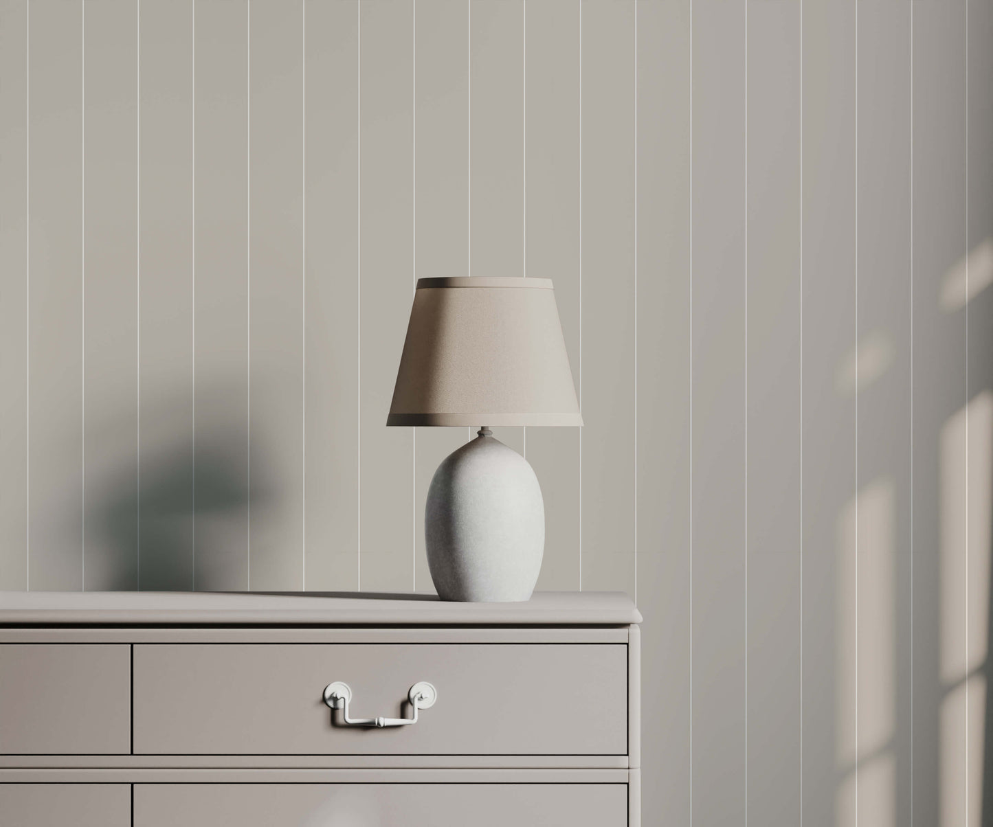 The delicacy of the pinstripe ensures that the design is textural rather than dominating, functioning beautifully as a refined backdrop that complements modern furnishings. This minimal pinstripe wallpaper is ideal for creating an atmosphere of quiet elegance and architectural precision in home offices, bedrooms, or main living areas. It is a smart, understated choice for adding definition without introducing heavy pattern.