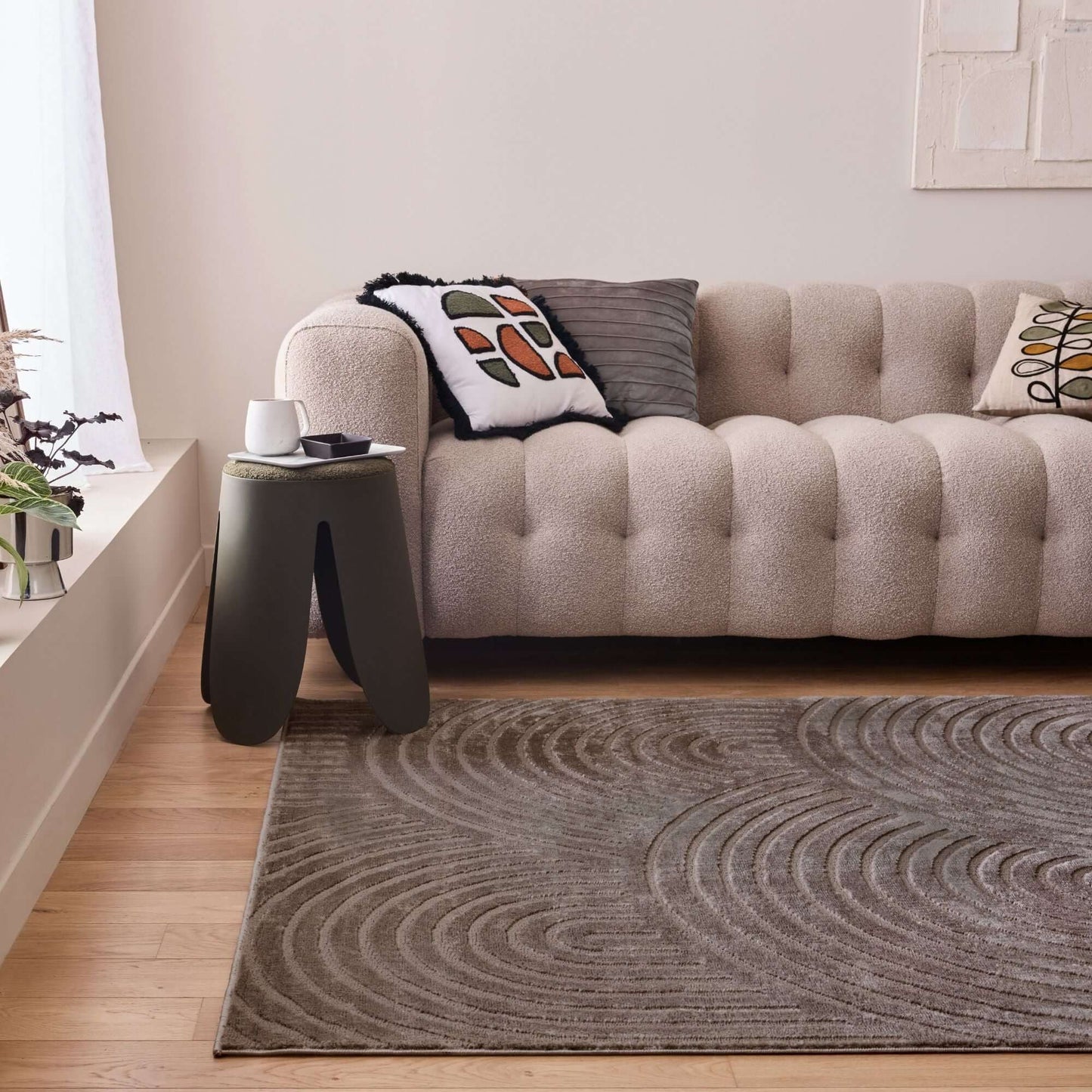 Elevate your home decor with this grey-coloured area rug, a perfect blend of style and functionality. The rug features a soft yet durable pile made from a premium blend of polypropylene and polyester, providing a 9 mm thickness and comfortable cushioning. Its cotton backing ensures long-lasting durability and stability, making it suitable for various spaces, including the living room, kitchen, and bedroom.