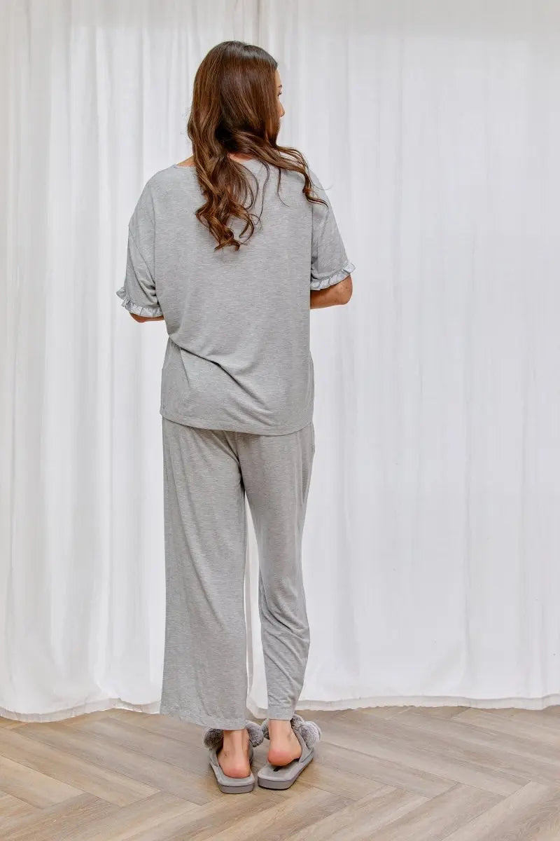 Bamboo Frill Tee Trouser Set in Grey Marl