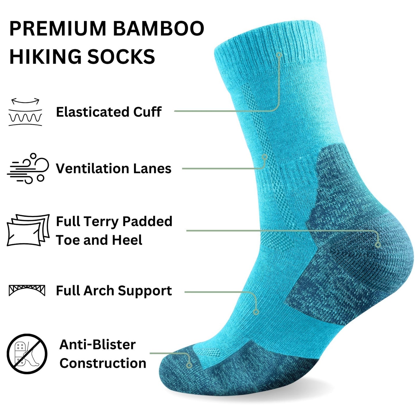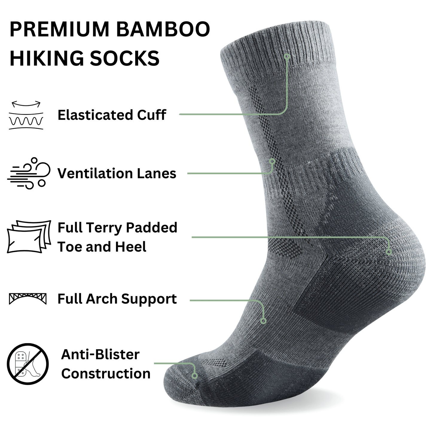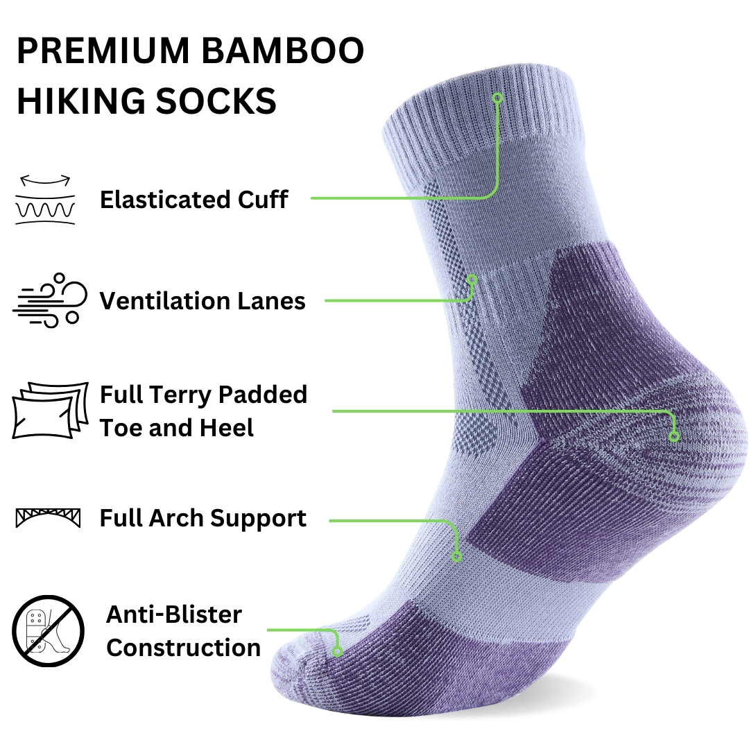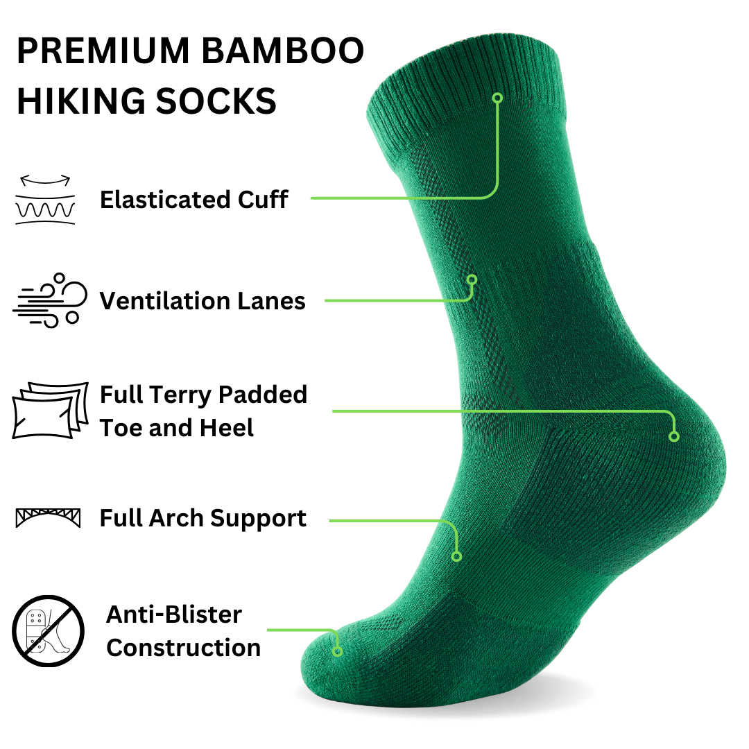 Experience ultimate comfort on your toughest trails with our premium bamboo hiking socks. Engineered with a fully seamless construction to eliminate blisters, these durable socks feature strategic cushioning in the sole and toe areas for all-day support. The revolutionary temperature-regulating bamboo fabric keeps feet cool in summer and warm in winter, making these socks your essential companion for every adventure. Why settle for less when your feet deserve the best?