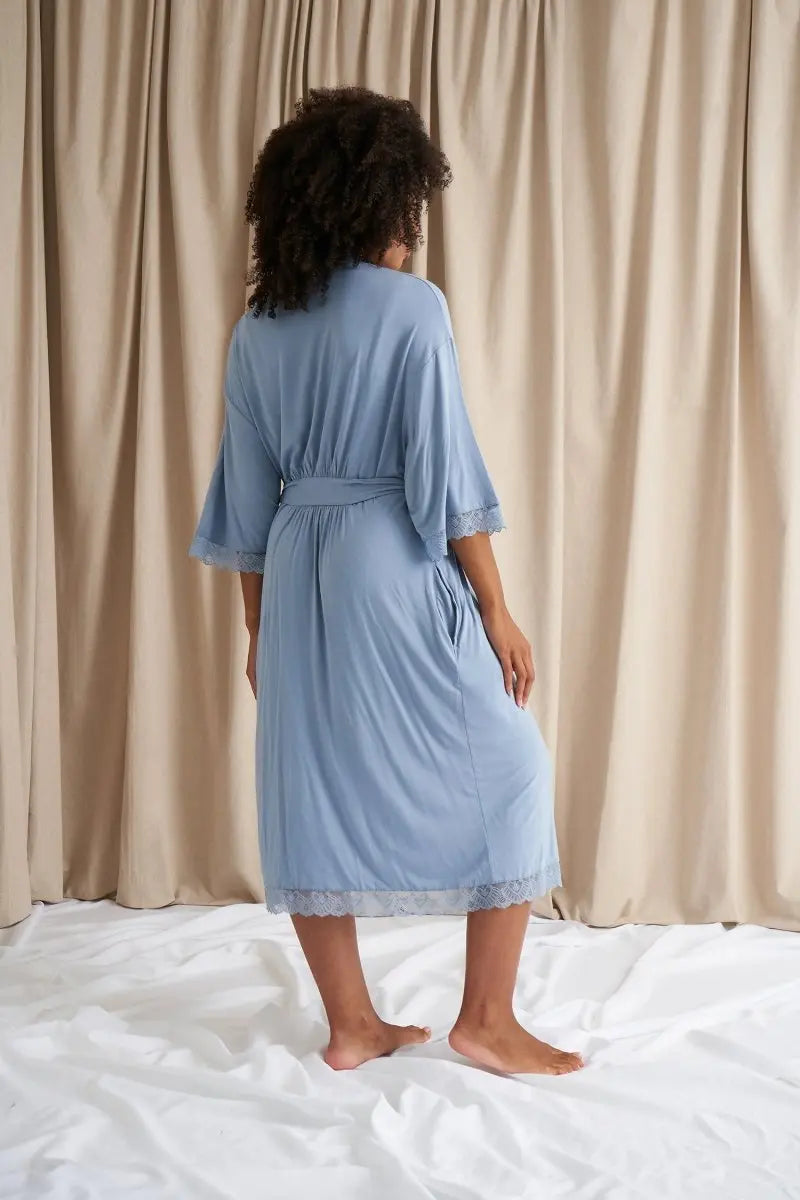 Perfect for evening lounging or layering over your favourite nightwear, it pairs beautifully with the matching Bamboo Lace Chemise and Amelie Slippers for a coordinated, elegant bedtime look.