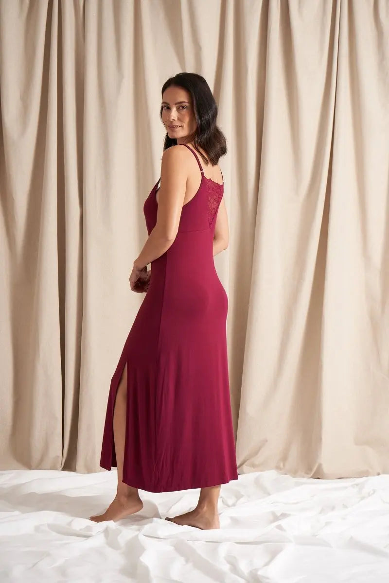 Bamboo Lace Midaxi Chemise in Bordeaux