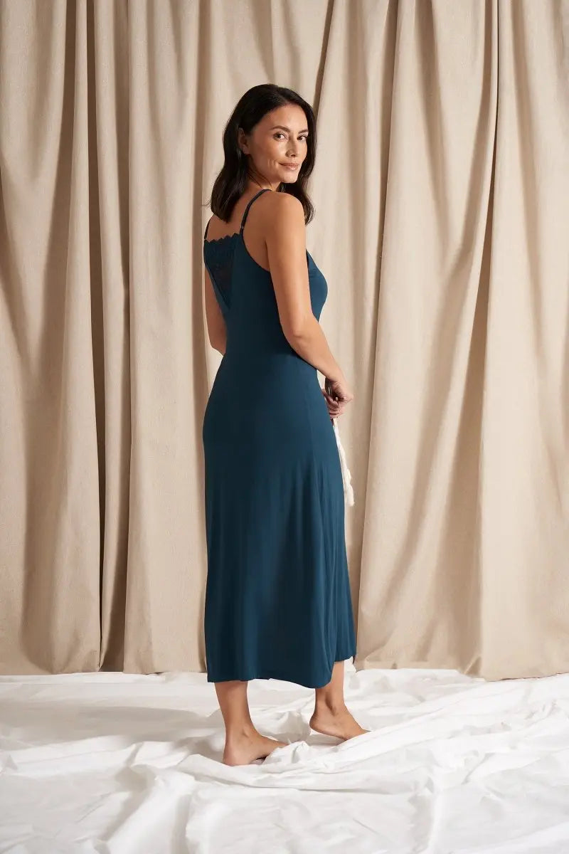 Experience luxury and elegance with our Bamboo Lace Midaxi Chemise, crafted from our best-selling bamboo fabric and enhanced with delicate lace detailing. This chemise features adjustable straps for a perfect fit and a nipped-in waist that flatters all figures. The longer length design and subtle side split offer both sophistication and ease, ideal for lounging while maintaining a glamorous feel. A delicate lace insert on the back adds a touch of feminine charm. Elevate your sleepwear wardrobe with the sustainably sourced softness of bamboo and the timeless allure of this midaxi style.