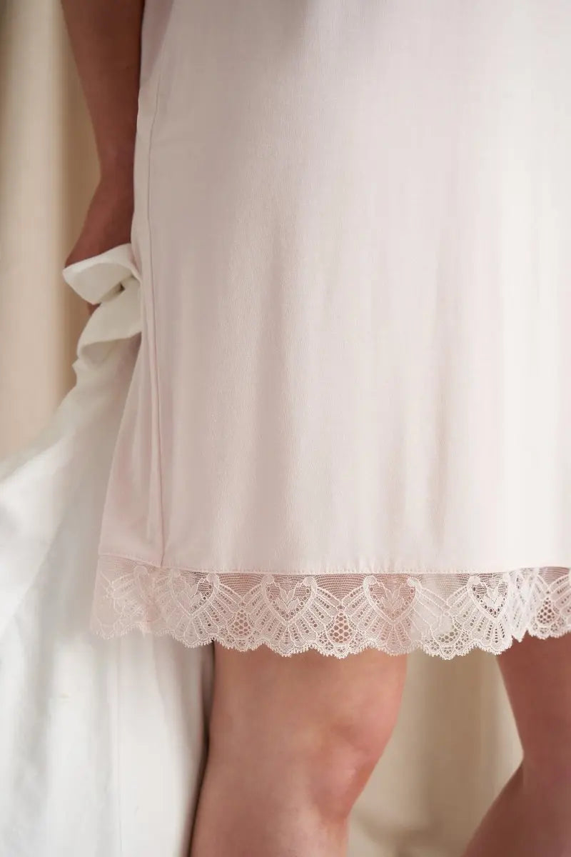 Introducing our Bamboo Lace Tee Dress, the latest addition to our beloved bamboo lace collection, designed specifically for luxurious nights in.