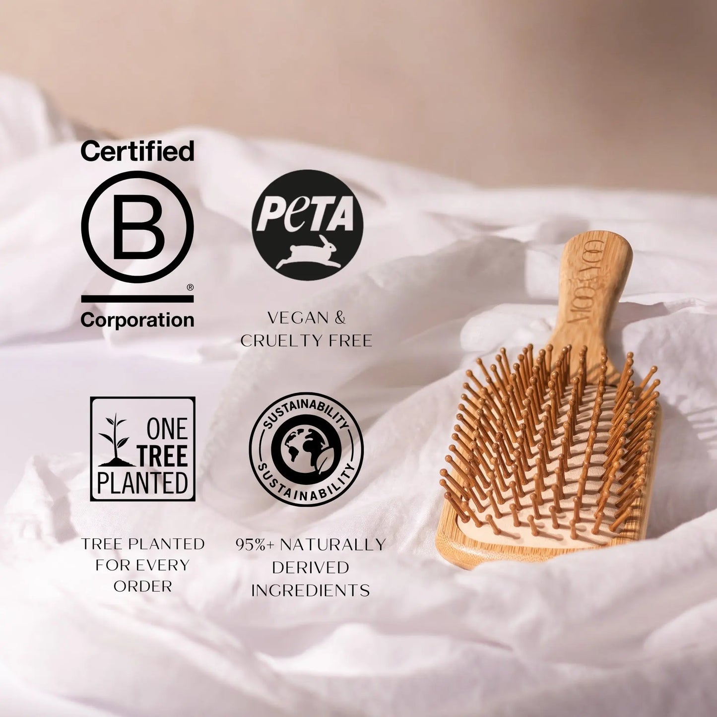 Bamboo is a sustainable resource and all of the bamboo used in these brushes is harvested sustainably. As it is the fastest growing plant in the world, it allows for fast and frequent harvesting without affecting natural bamboo forests negatively. Bamboo is hypoallergenic and also possesses a unique antibacterial quality making our hair brush more hygienic and odour resistant.