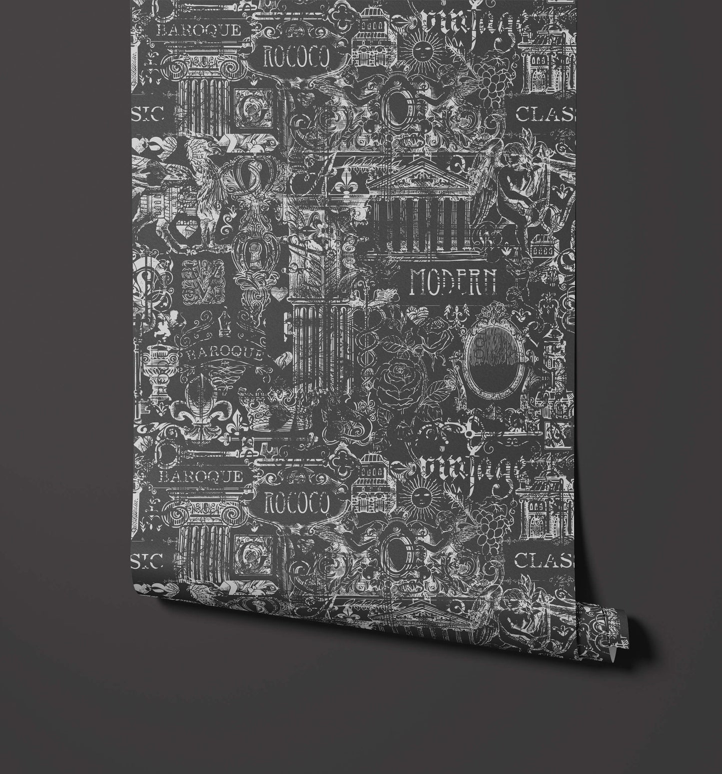 Elevate your space with the opulent grandeur of our baroque wallpaper, available in Black & Blue options. The intricate details pay homage to the classic baroque style, while providing a graphic grungy twist.