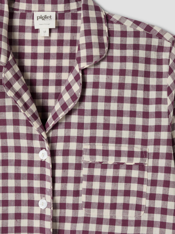 Berry Gingham Women's Linen Blend Pyjama Trouser Set