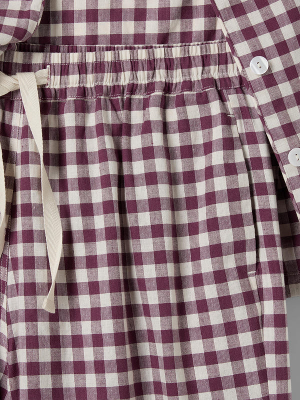 Berry Gingham Linen Blend Pyjama Trouser Set