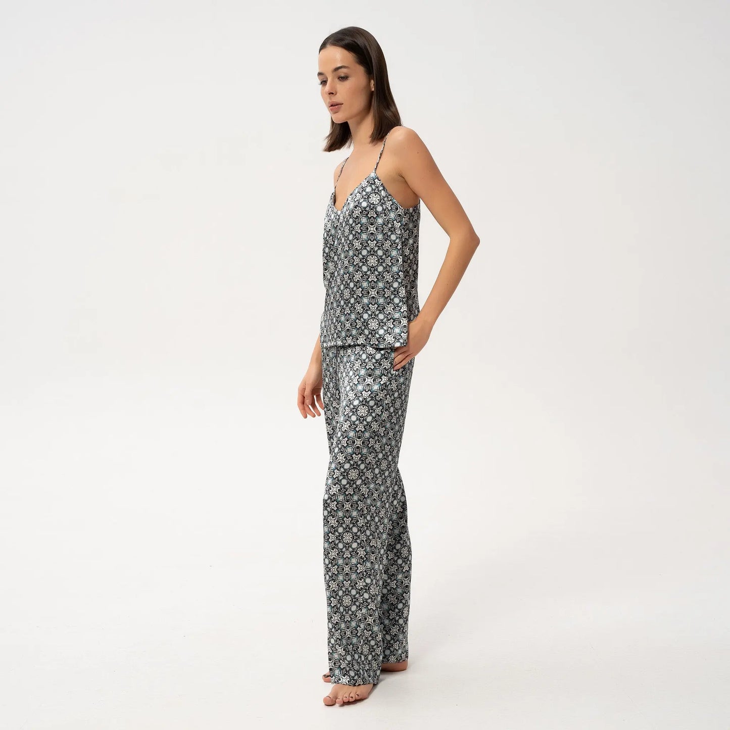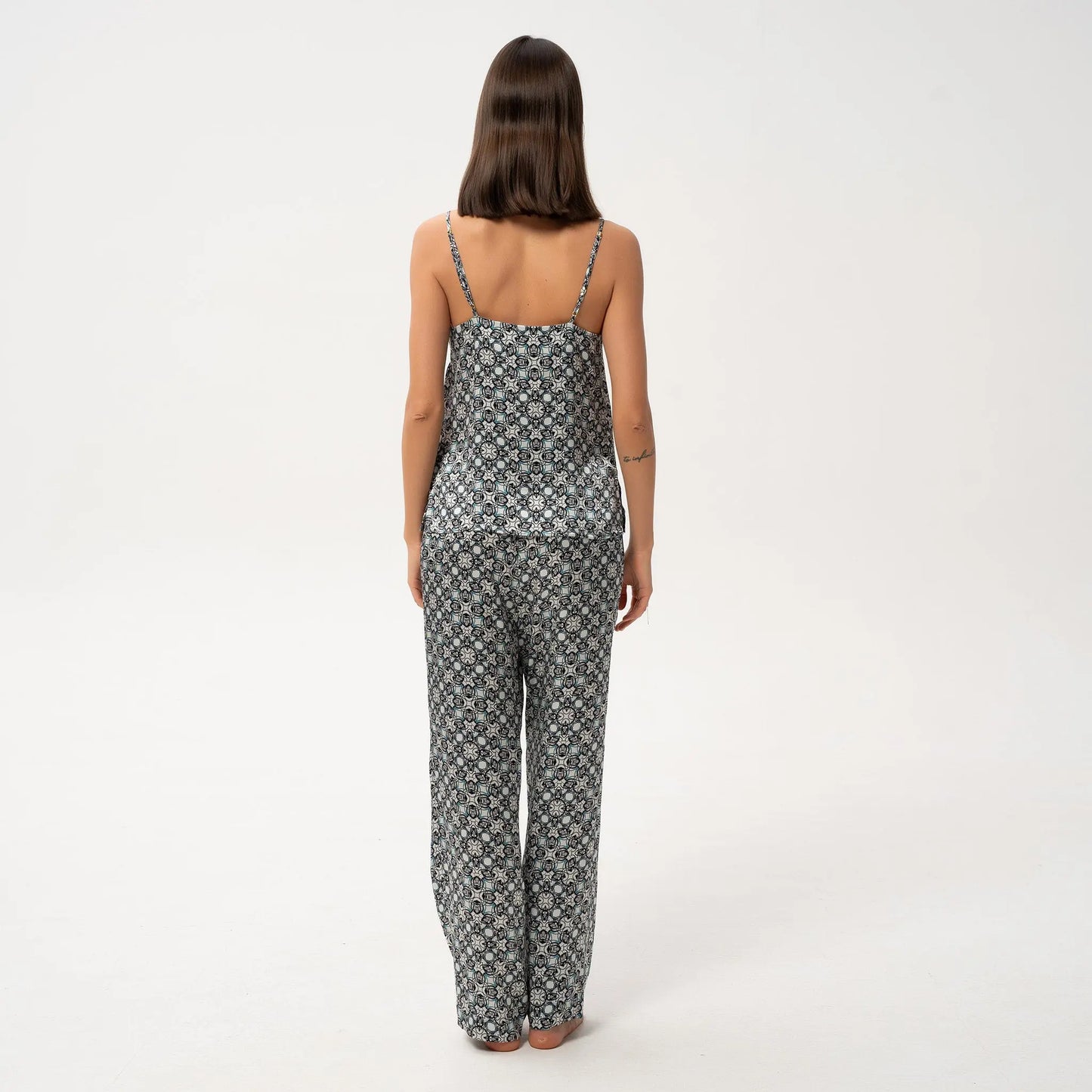 The Neo Geo Silk Camisole is crafted from premium 100% washable Mulberry Silk and features thin, adjustable straps for a customized fit, offering ultimate comfort and durability for long-lasting wear.