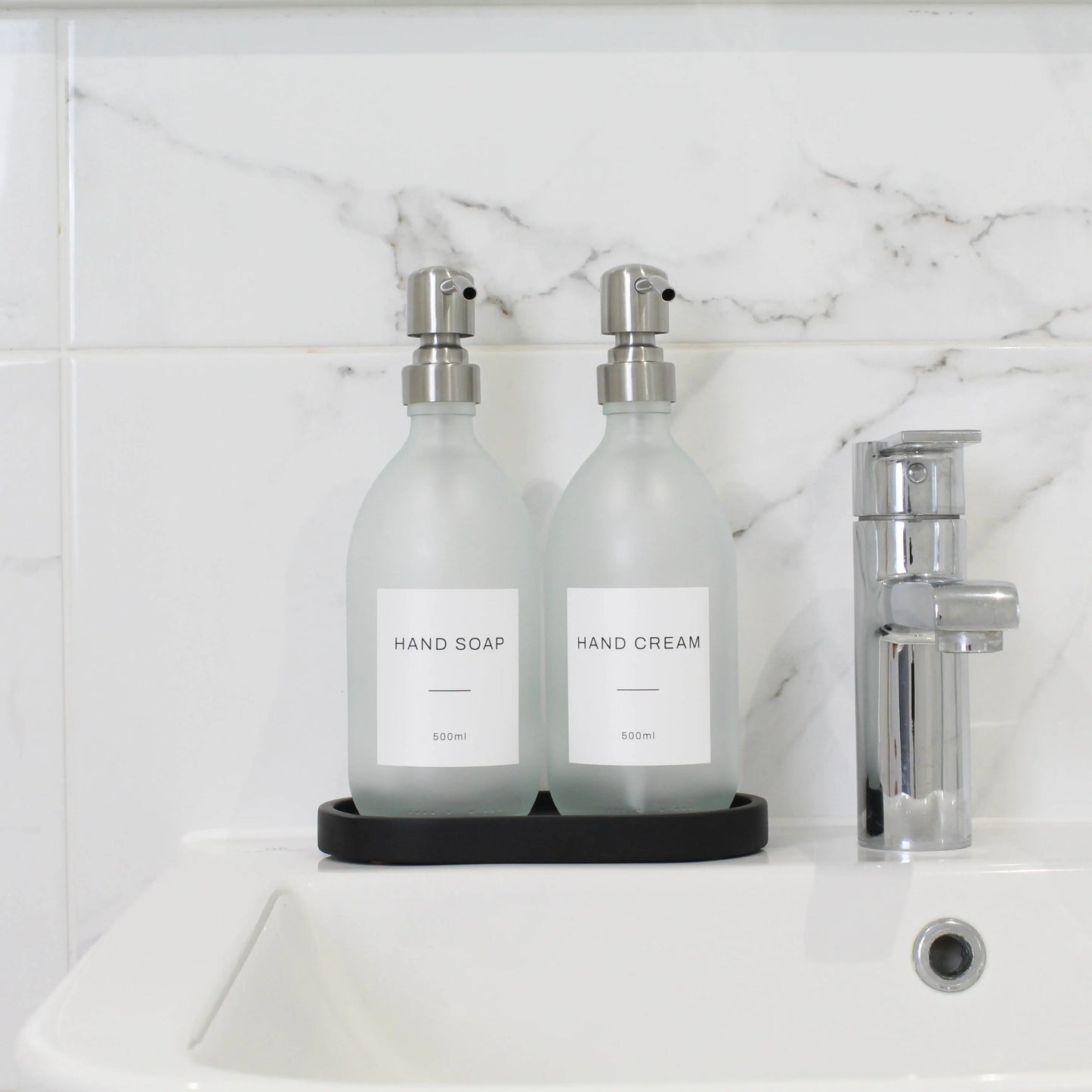 Black Tray & Frosted White Dispenser Double Set