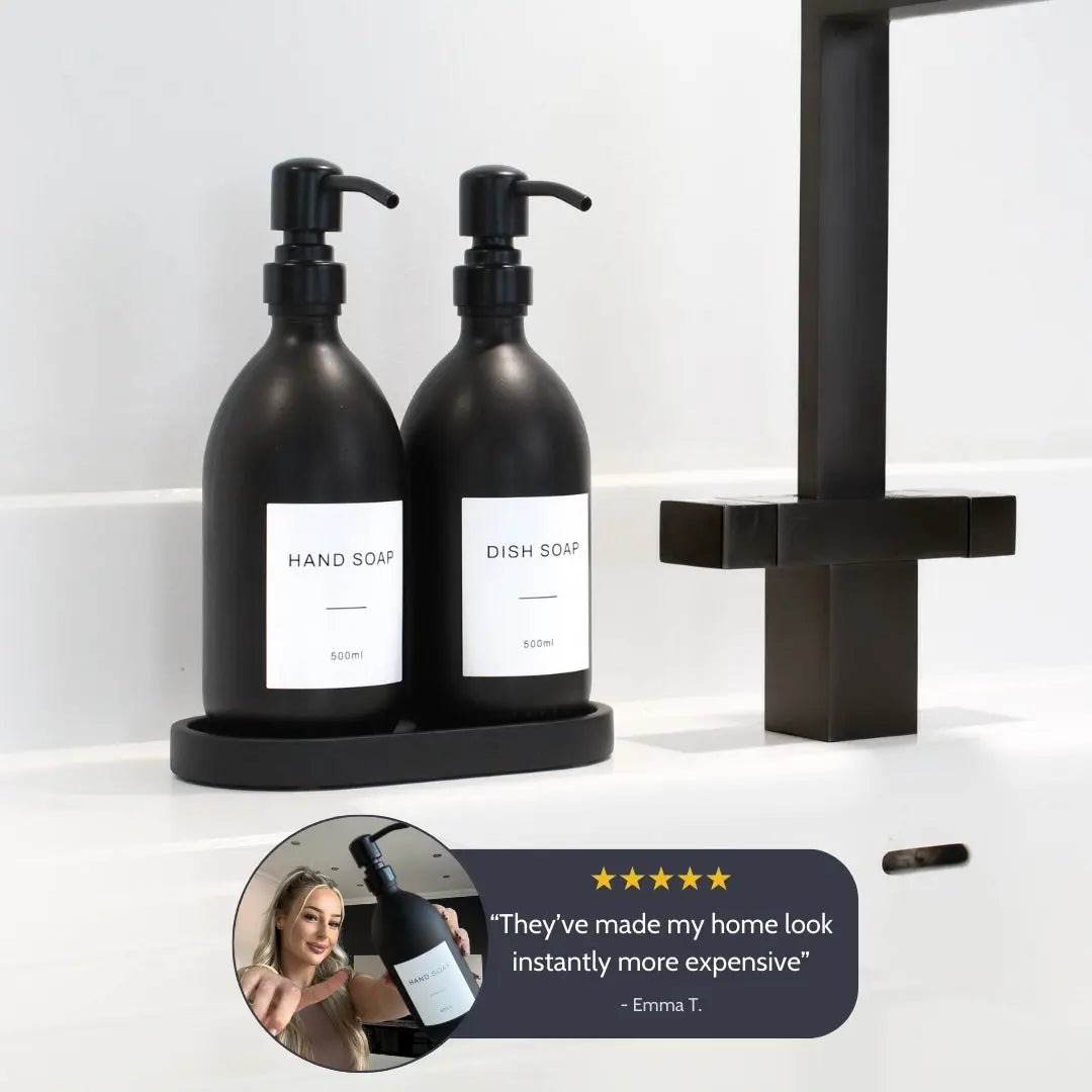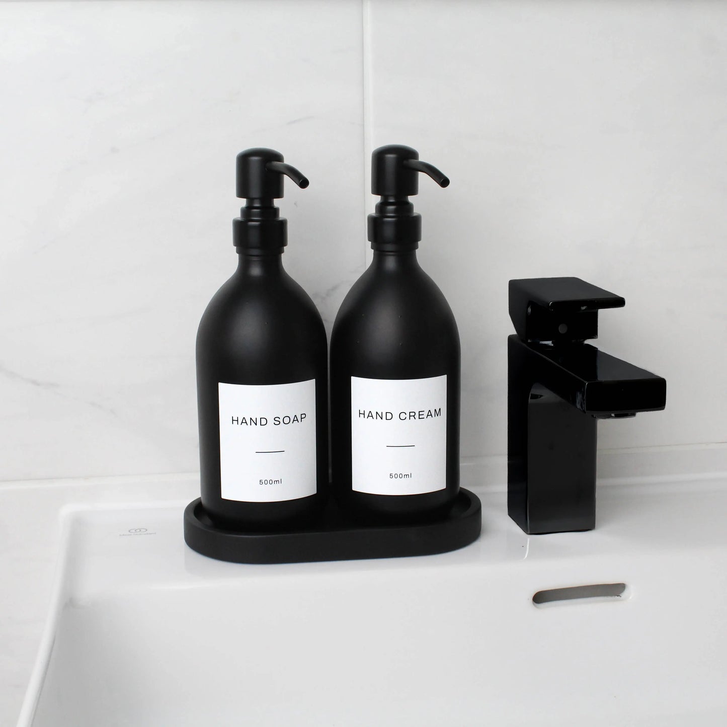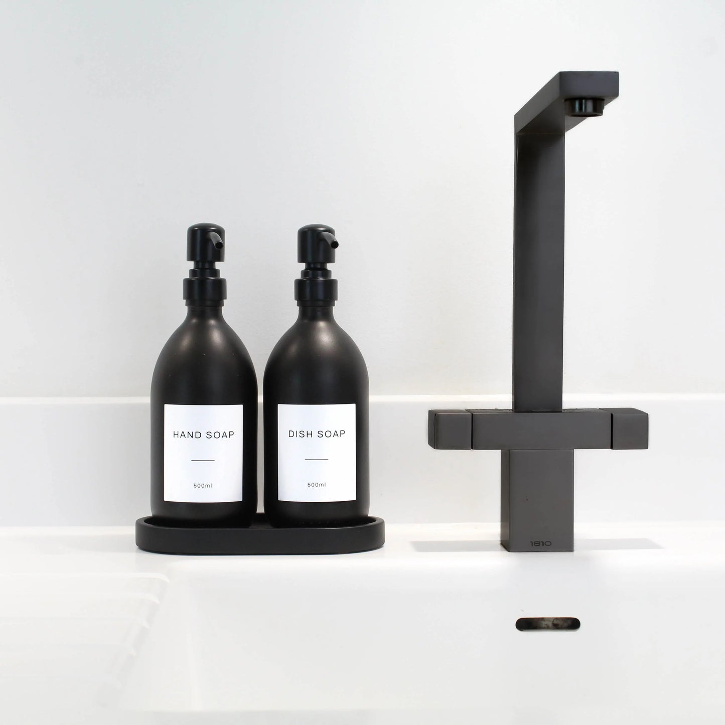 2 x Namie Matte Black Glass Dispenser Bottles (pre-labelled)