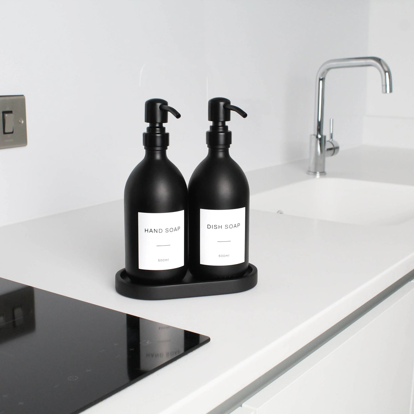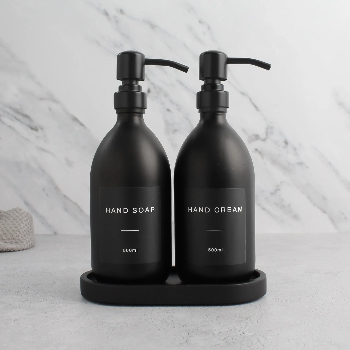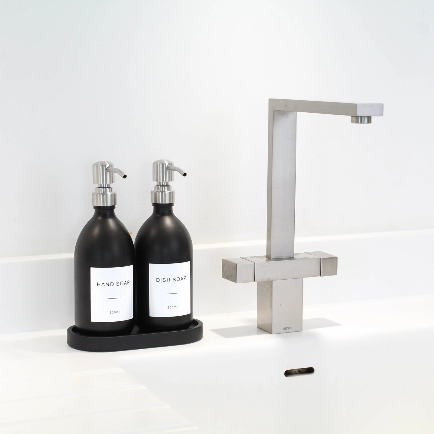 2 x Namie Matte Black Glass Dispenser Bottles (pre-labelled)