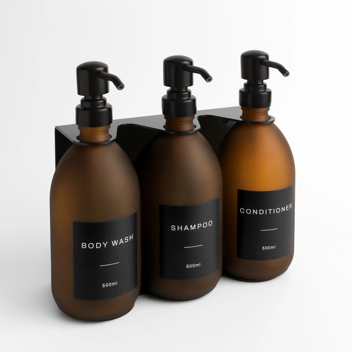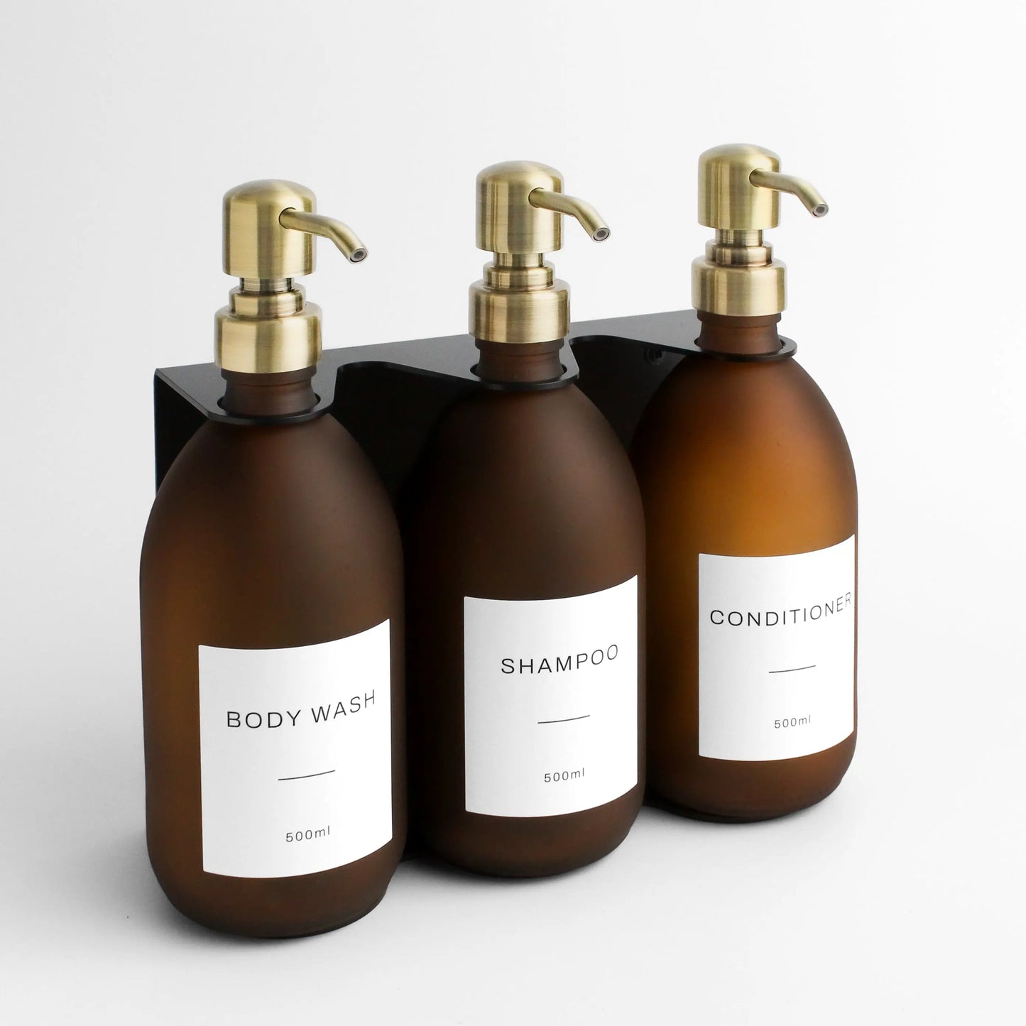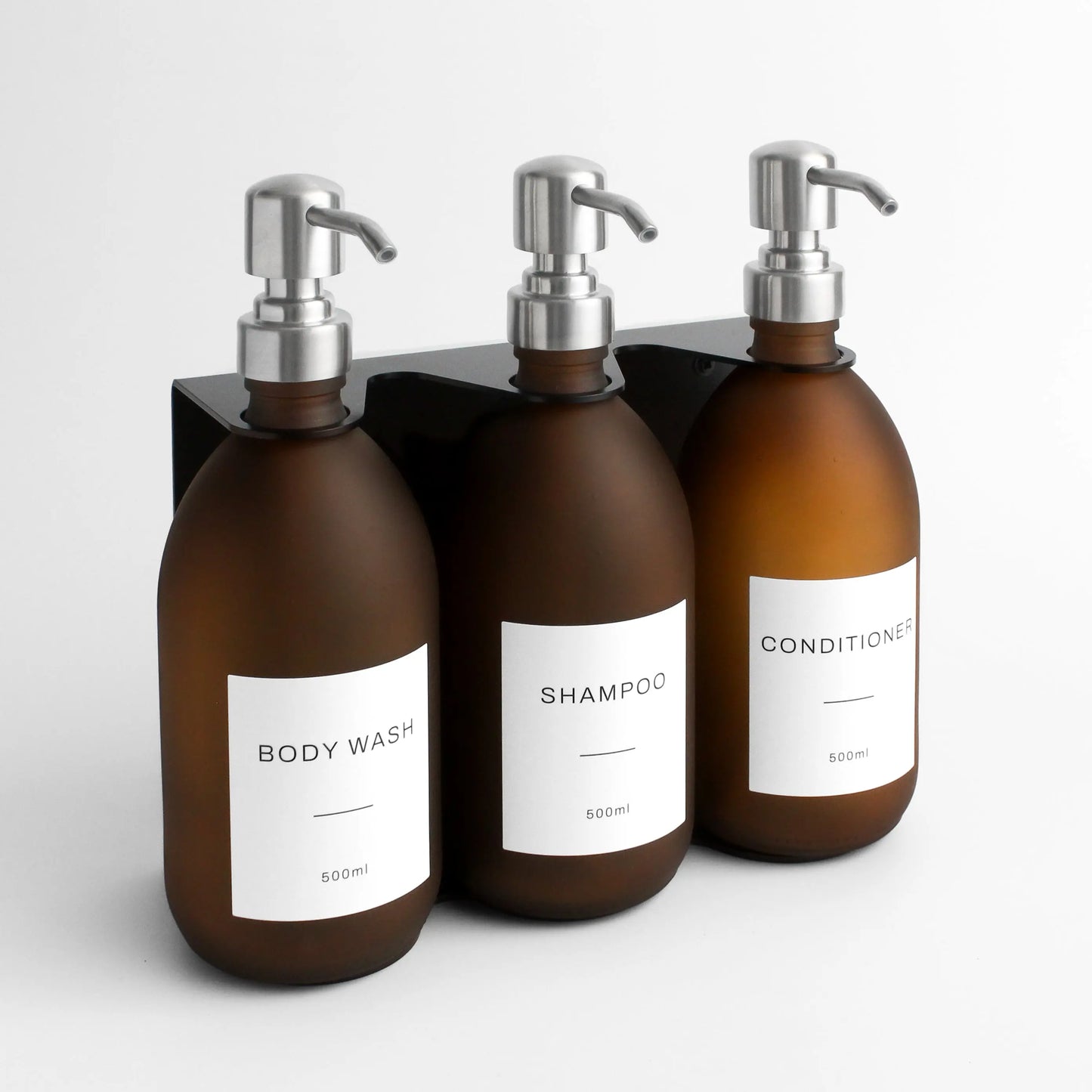 Black Wall Bracket & Frosted Amber Glass Dispenser Set