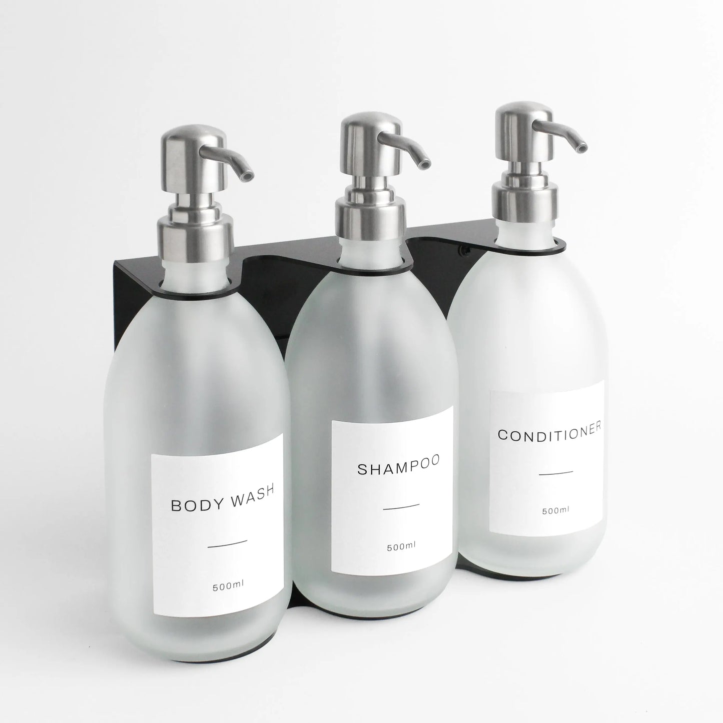 Black Wall Bracket & Frosted White Glass Dispenser Set