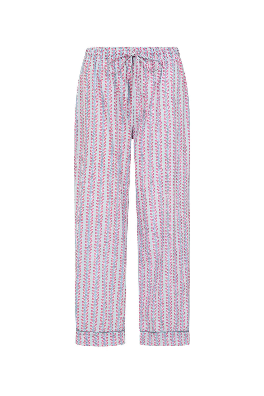 Pink & Blue Floral Stripe Hand-Printed Cotton Pyjama Set