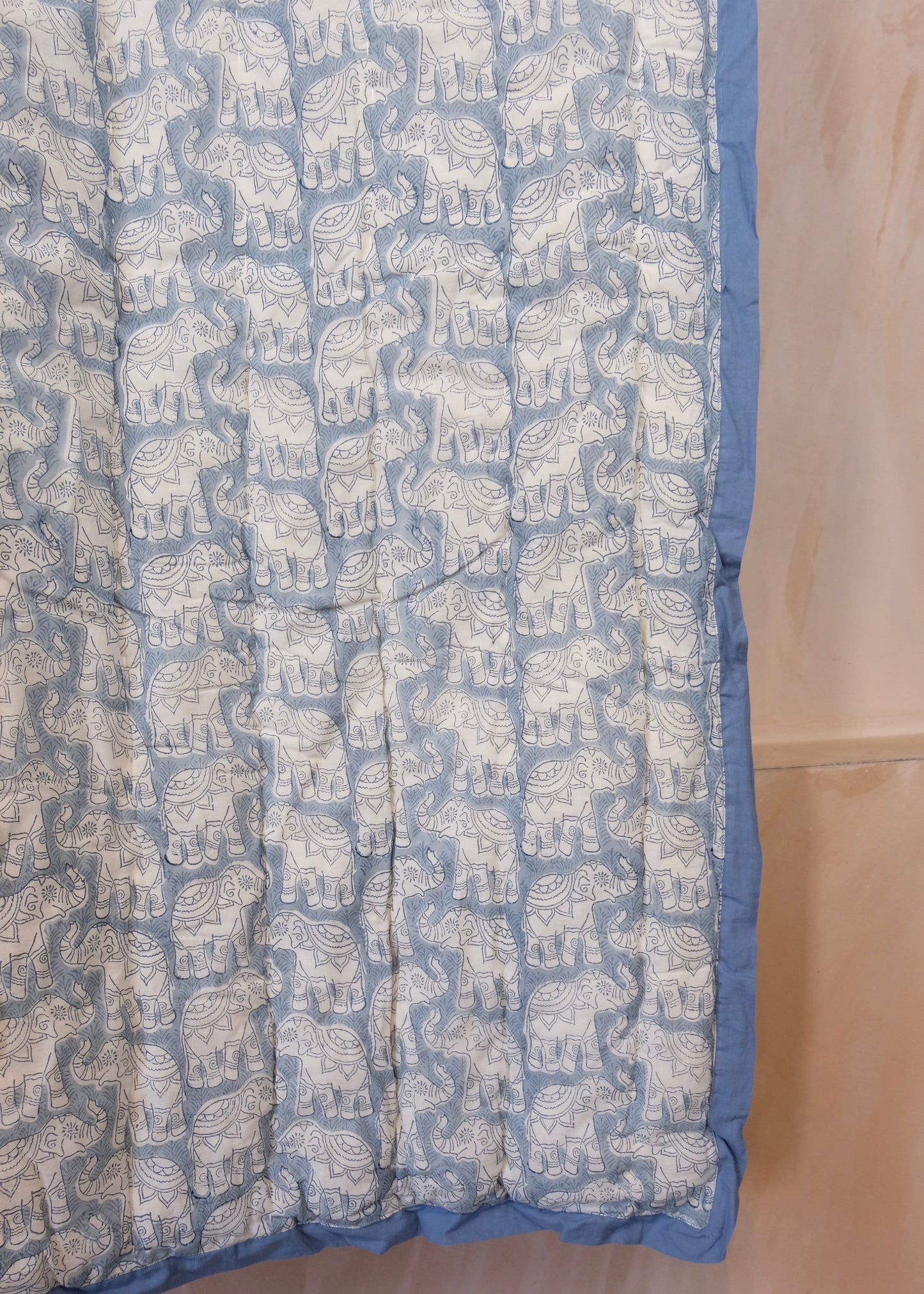 Introducing a playful new addition to our quilt collection: the elephant print quilt! Available in two sizes and three beautiful colour ways, each quilt features a charming thick stripe on the reverse side. Made from organic cotton with a cozy cotton quilt layer, these quilts are a perfect, stylish addition to any nursery or bedroom.