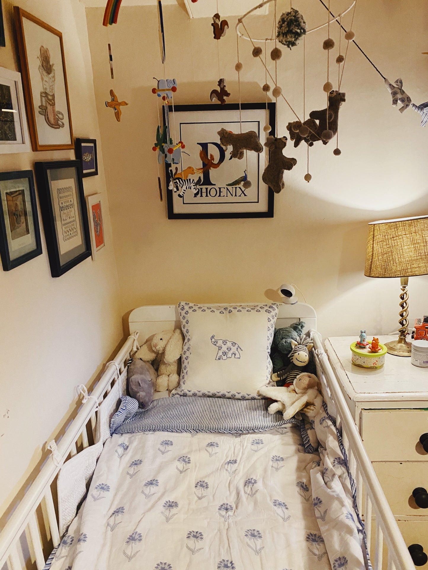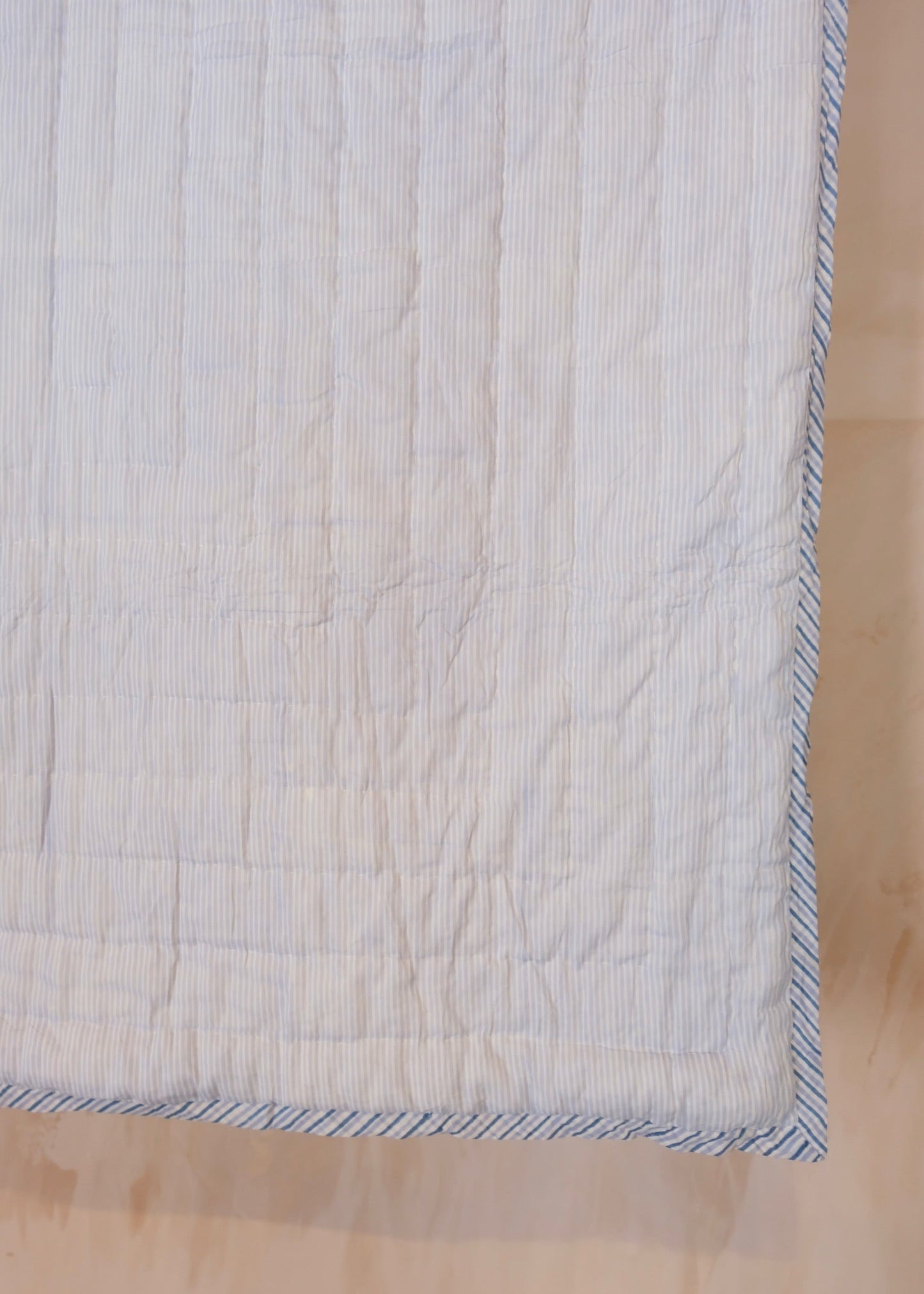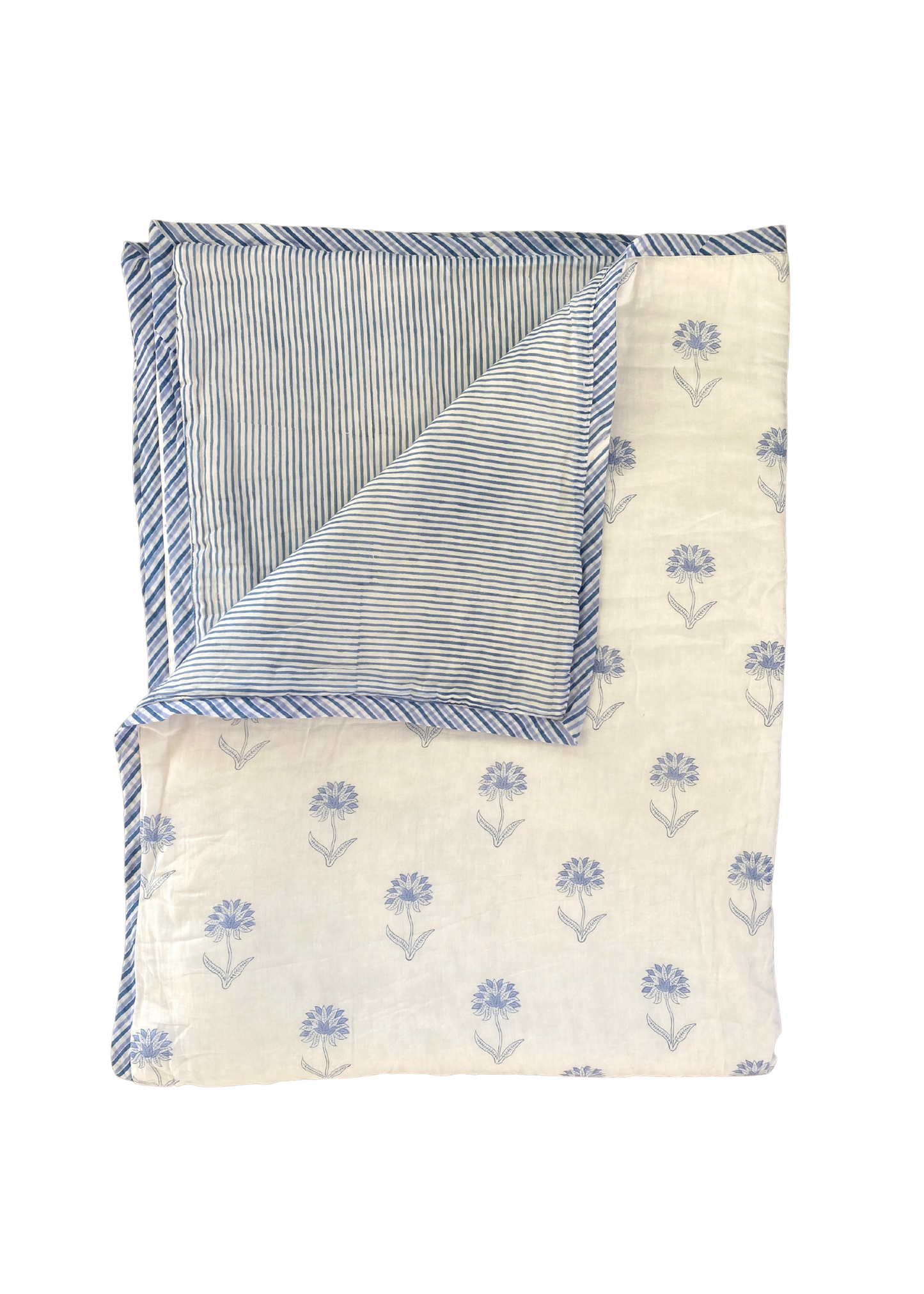 A large organic cotton cot quilt. The cot quilt size can be used in a variety of ways including as a cot quilt, bed quilt, play mat and pram blanket. The are a super lovely addition to a bedroom or nursery.