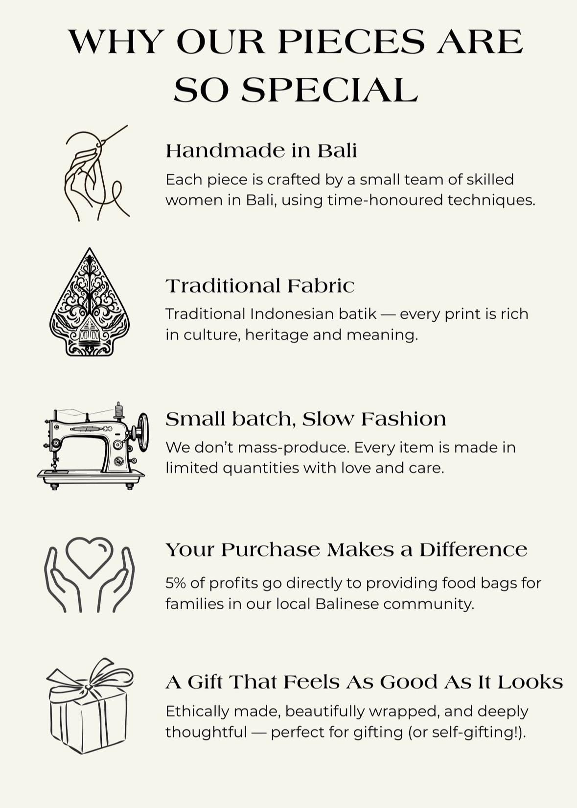 - Hand-printed batik design, made in Bali