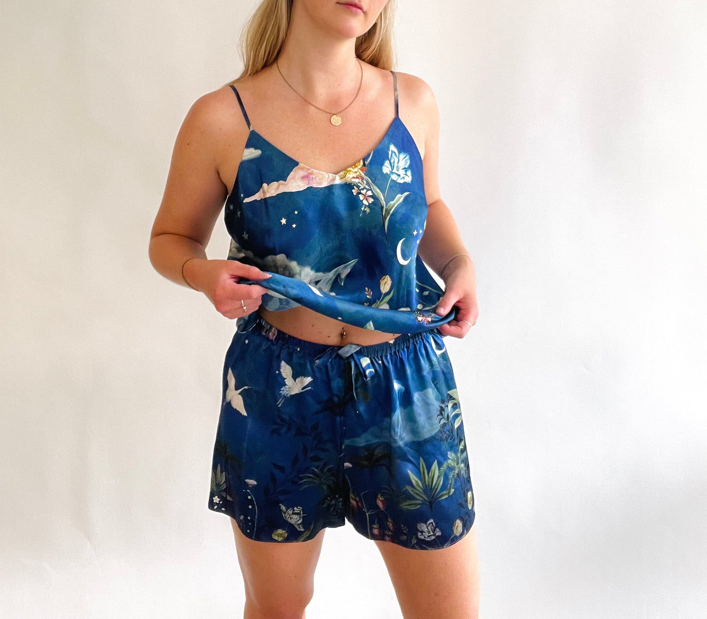 Made from the most beautiful Silk Satin and digitally printed with my own hand painted ‘Eden’ Print, Im so proud to launch this set which has been skillfully crafted with the aim to bring serenity and luxury to your self-care time.
