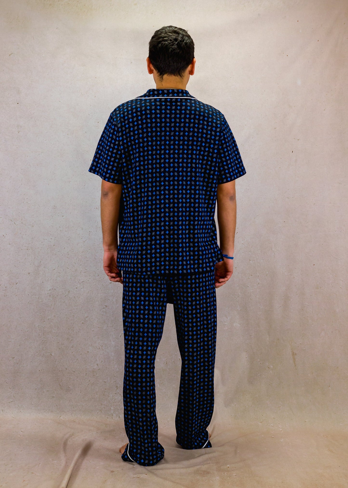 Blue Squares Mens Pima Cotton Short Sleeve Pyjama Trouser Set
