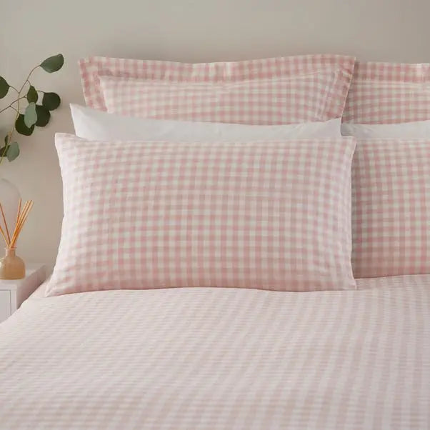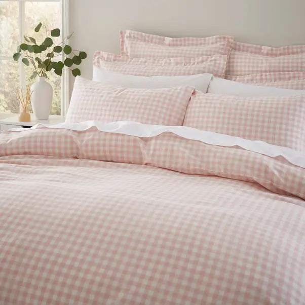 Blush Portloe Woven Gingham Duvet Cover Set – Soft, Chic & Naturally Comfortable
